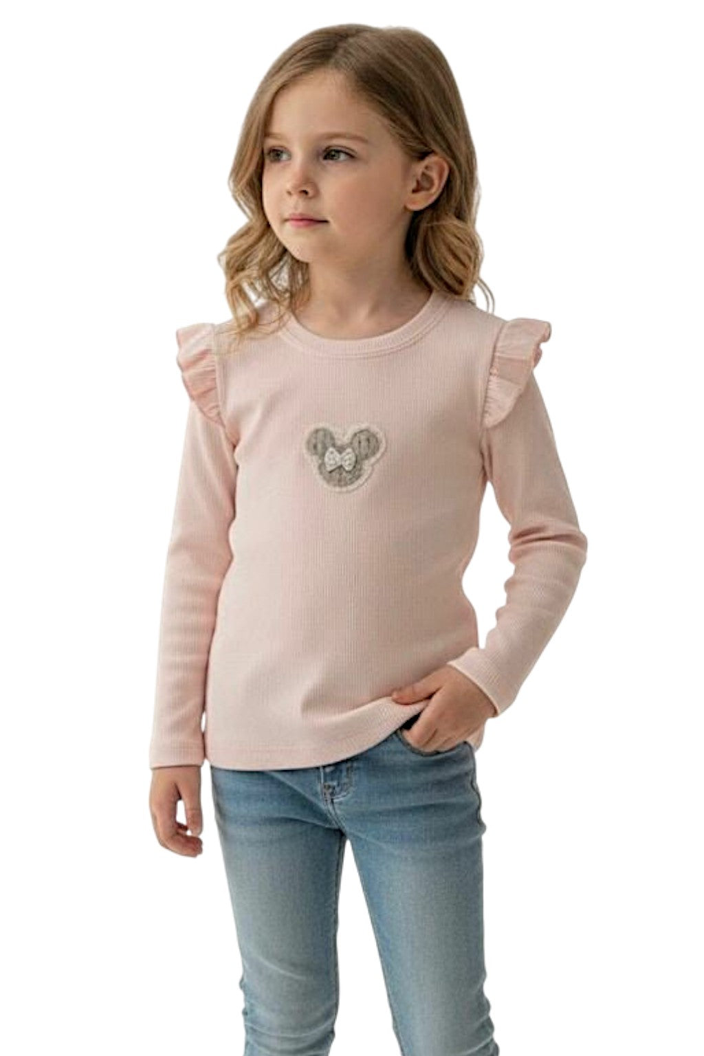 Bluzka prążek Myszka dziewczęca pudrowy róż Breeze 22354-161225-39