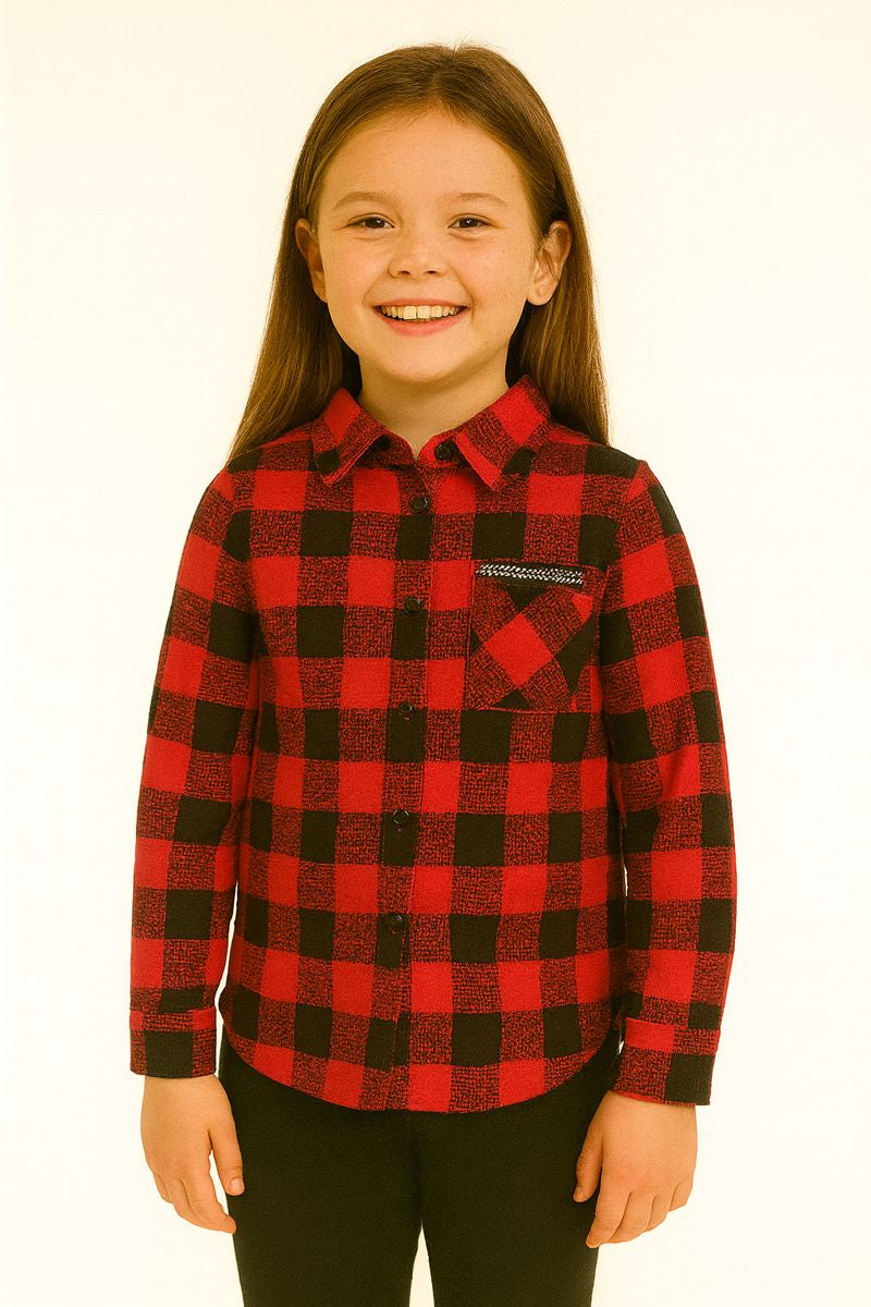 Koszula kratka dziewczęca czerwony Lambda 2325-111225