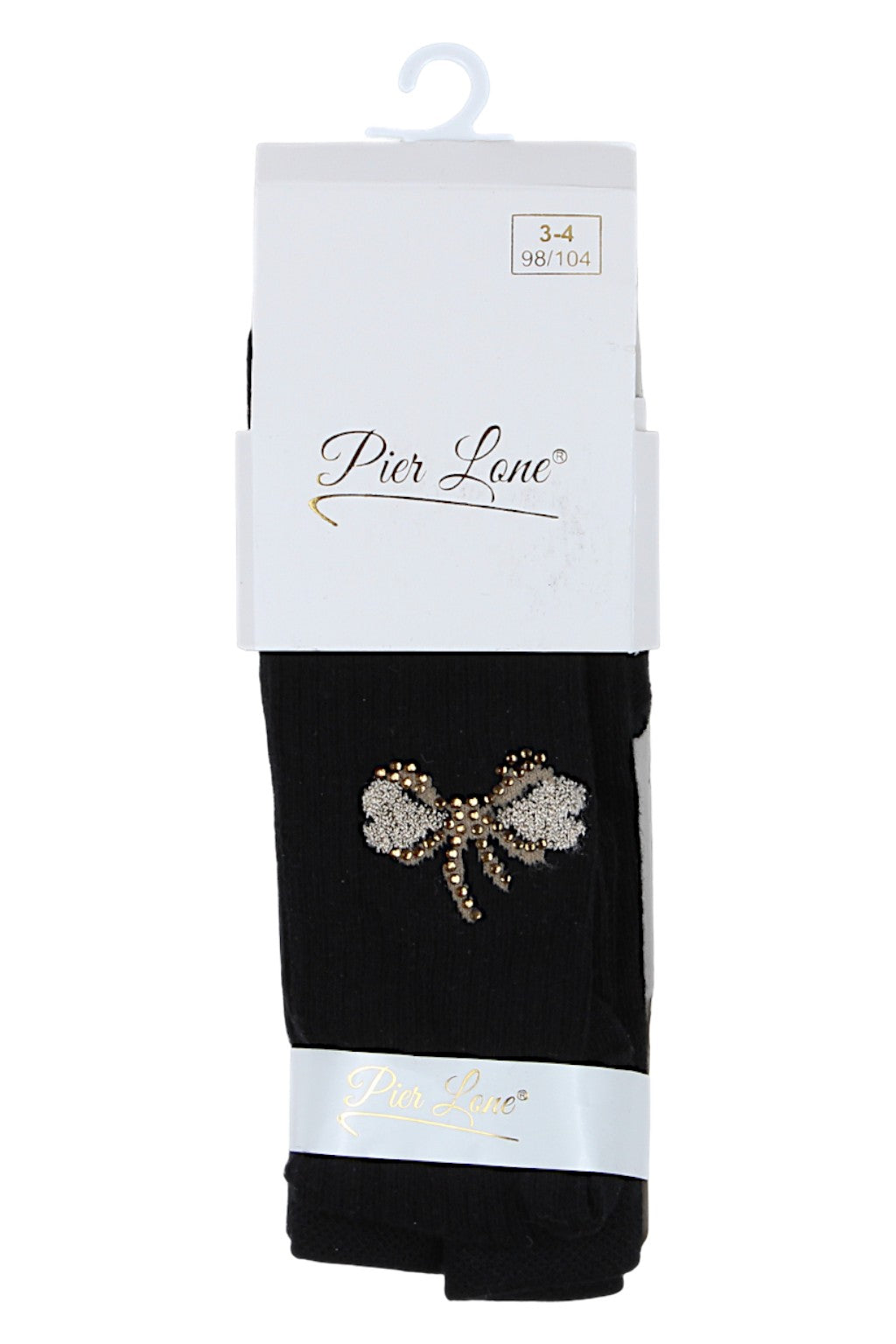 Rajstopy dziewczęce czarne z kokardką i serduszkiem cyrkoniowym Pier Lone 1516-81025