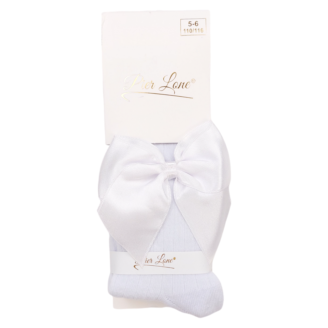 Rajstopki bawełniane kokardka prążek dziewczęce biały Pier Lone 1419-81025