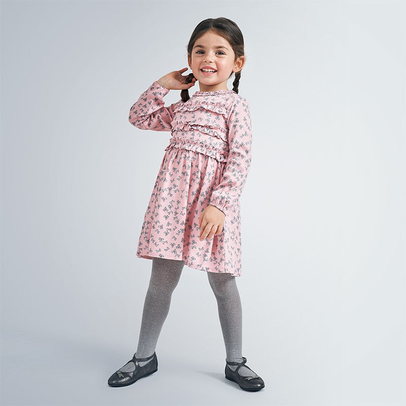 Children's dress with a bow print, long sleeves, buttoned at the back for girls Mayoral...