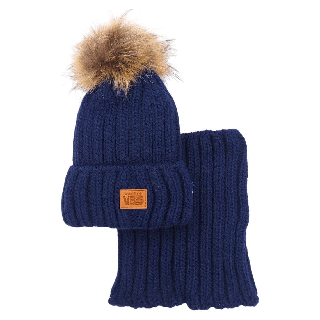 Set of hat with a snood with a pompom for boys navy blue Agbo K-41-241024-23
