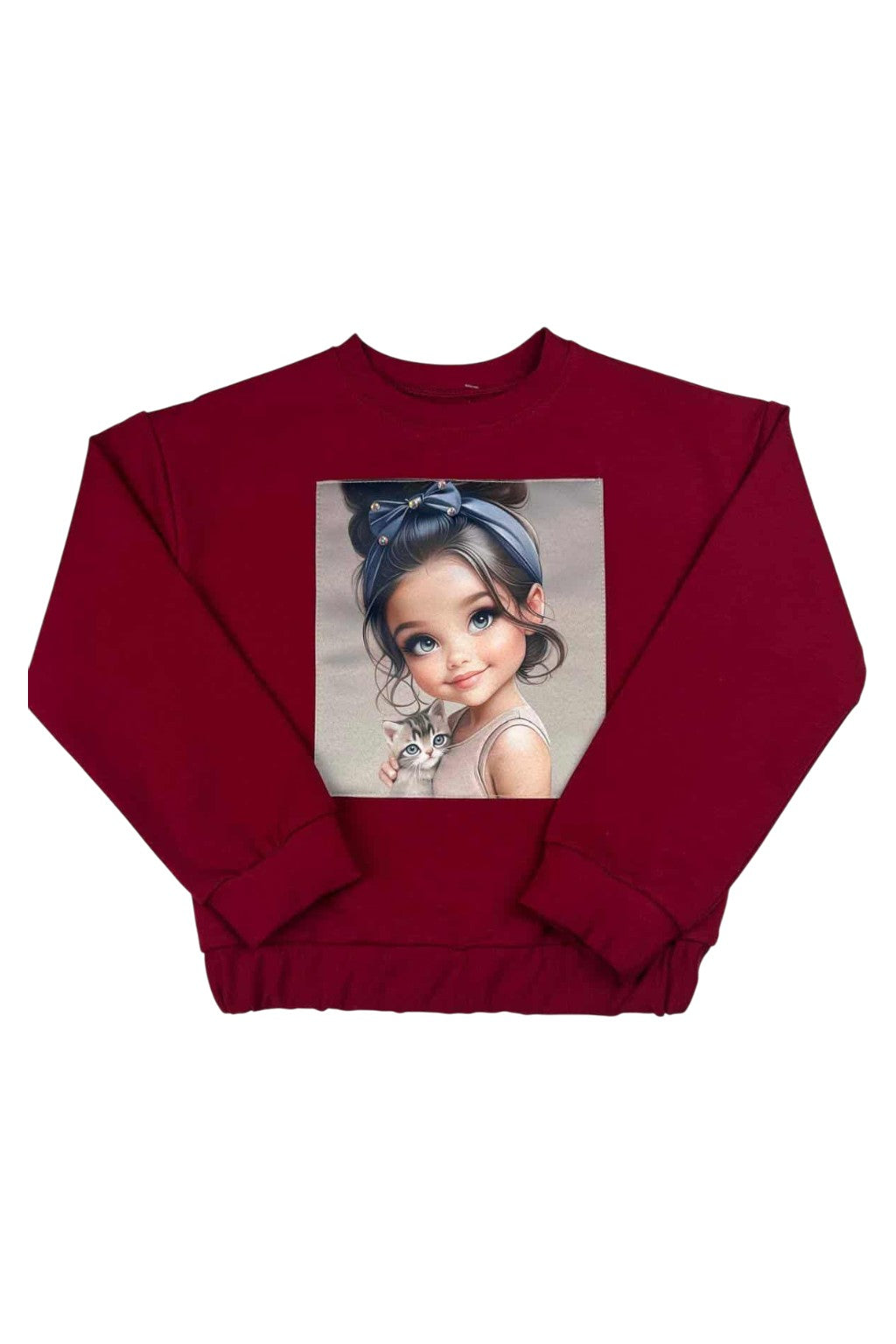 Bluza dziewczęca z kotkiem bordowy Guliwerkids 4113-28825