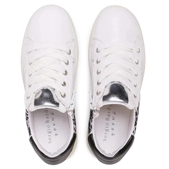 Diese Primigi Mädchen-Sneaker, Modell 530410, sind modische Kinderschuhe aus der Frühjahr/Sommer-Kollektion. Sie bestehen aus einer Kombination aus Vollnarbenleder und Stoff und sorgen so für Komfort und Langlebigkeit. Das silberne Obermaterial ist ein Blickfang, und glänzende Details verleihen ihnen Stil. Sie verfügen über einen Schnürverschluss und einen seitlichen Reißverschluss für einfaches An- und Ausziehen. Die Innensohle besteht aus hochwertigem Leder und sorgt für Komfort am Fuß, während das Stofffutter für ausreichende Belüftung sorgt. Die hochwertige Synthetiksohle bietet guten Halt und das feste Futter sorgt für Stabilität. Diese Schuhe sind ideal für aktive Mädchen, die Komfort mit modischem Design kombinieren möchten.
