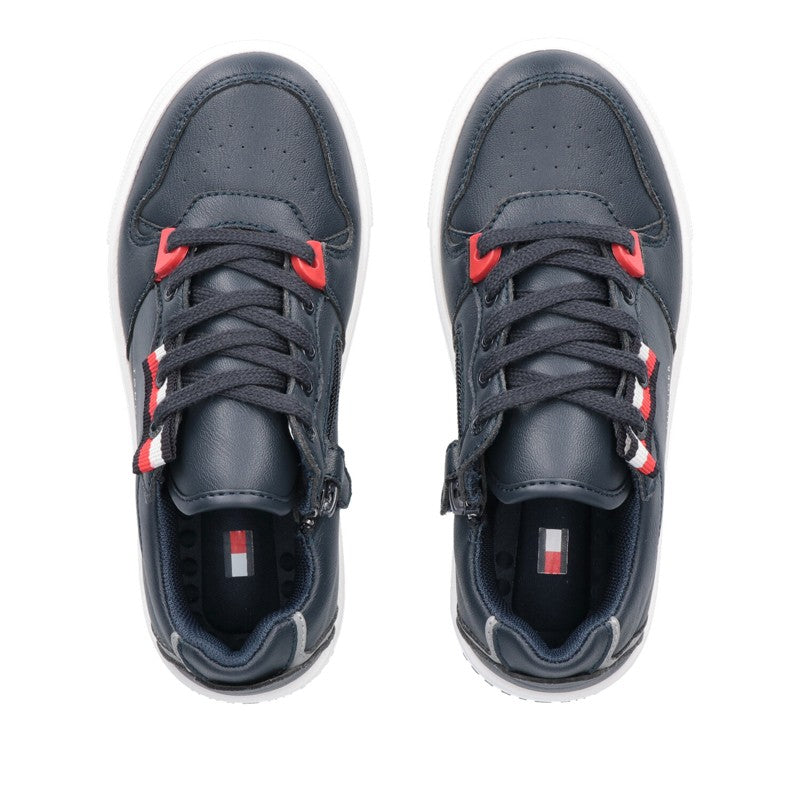 Diese marineblauen Sneaker für Jungen eignen sich perfekt für jeden Anlass – sowohl sportlich als auch lässig. Dank ihrer Vielseitigkeit und ihres modernen Designs passen sie perfekt zu jeder Jahreszeit. Stilvolle Schuhe von TOMMY HILFIGER sind die perfekte Wahl für anspruchsvolle Eltern, die modisches Design mit praktischem Komfort verbinden möchten.