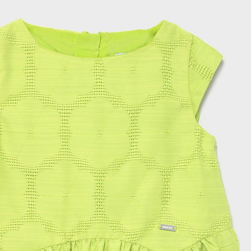 Elegantes Kinderkleid mit kurzen Ärmeln und Blumendruck für Mädchen von Mayoral aus der Frühjahr/Sommer Baby Mädchen Kollektion, Produktcode 1974, Farbe 14 Grün. Kinderbekleidung.