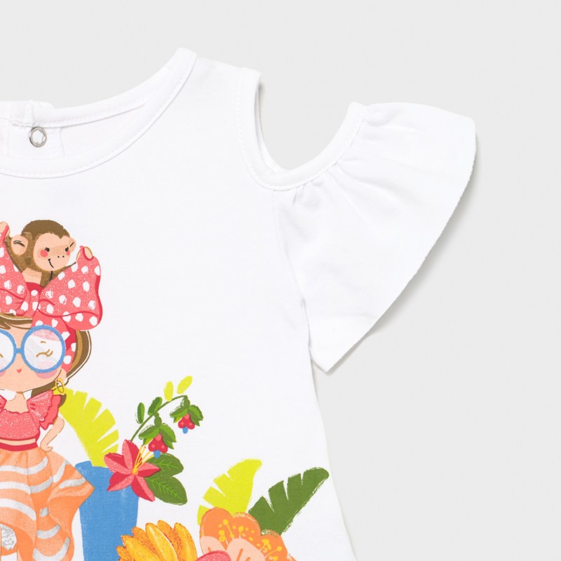 Kinder-Baumwollkleid mit Tüll und kurzen Ärmeln und Aufdruck für Mädchen aus der Mayoral-Kollektion Frühjahr-Sommer für Babymädchen, Produktcode 1993, Farbe 16 Blau. Kinderkleidung.