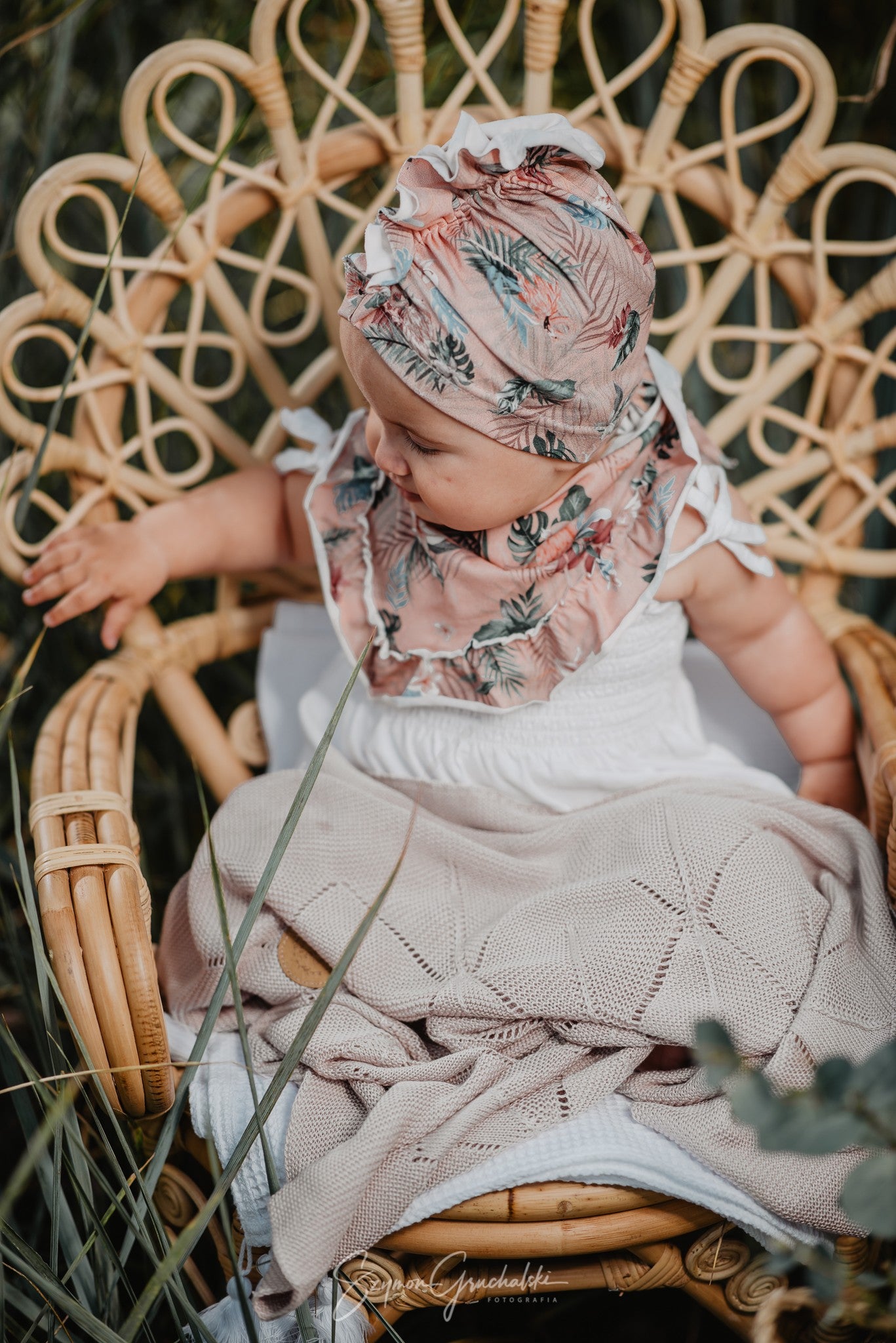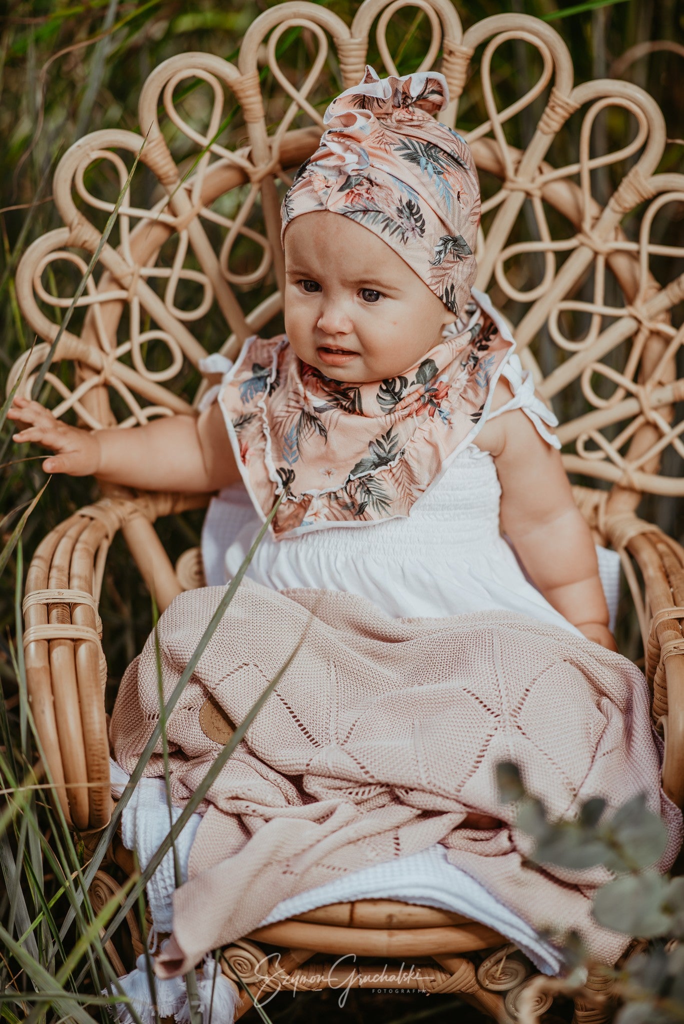THEDA Kinder-Turbanmütze aus Baumwolle mit Jamiks-Aufdruck aus der Frühjahr-Sommer-Kollektion, Produktcode JWD082-3, Farbe Apricot. Kindermützen.