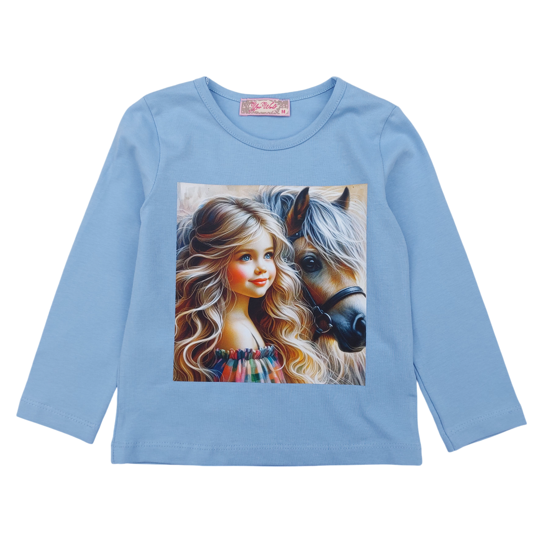 Bluzka bawełniana z koniem dziewczęca niebieski Your Word 5462-191024-35