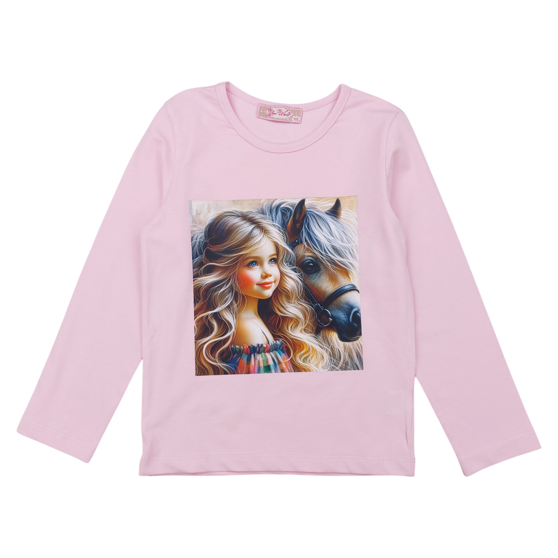 Bluzka bawełniana z koniem dziewczęca róż Your Word 5462-7125-40