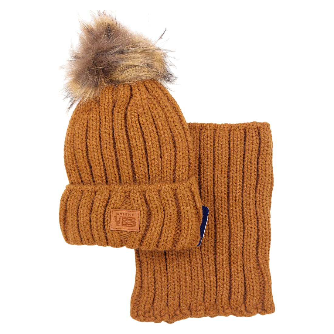 Komplet czapka z kominem z pomponem chłopięcy camel Agbo K-41-241024-6