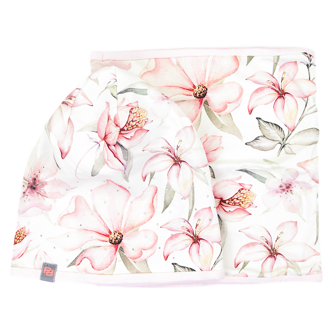 Komplet czapka i komin w kwiaty dziewczęce róż Panek 2028-11-7325-40