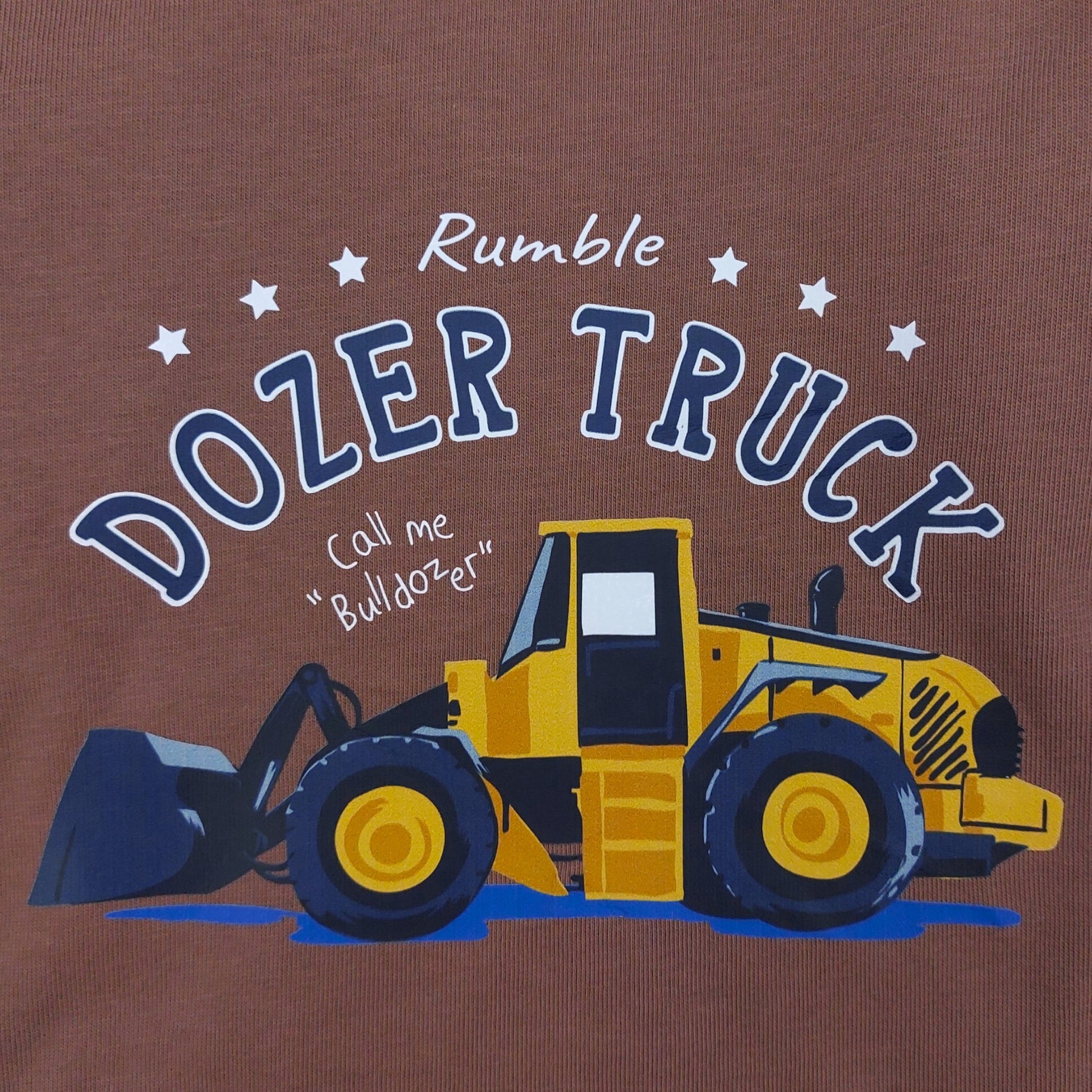 Chłopięca bluzka bawełniana z motywem koparki "Dozer Truck" od marki Your Word (model 864-30924), idealna na chłodniejsze dni jesienno-zimowe. Wykonana w odcieniu brązu, z dużym nadrukiem koparki w jaskrawej żółci na przodzie oraz napisem "Rumble" i "Call me Bulldozer". Posiada długie rękawy oraz ściągacze na mankietach.