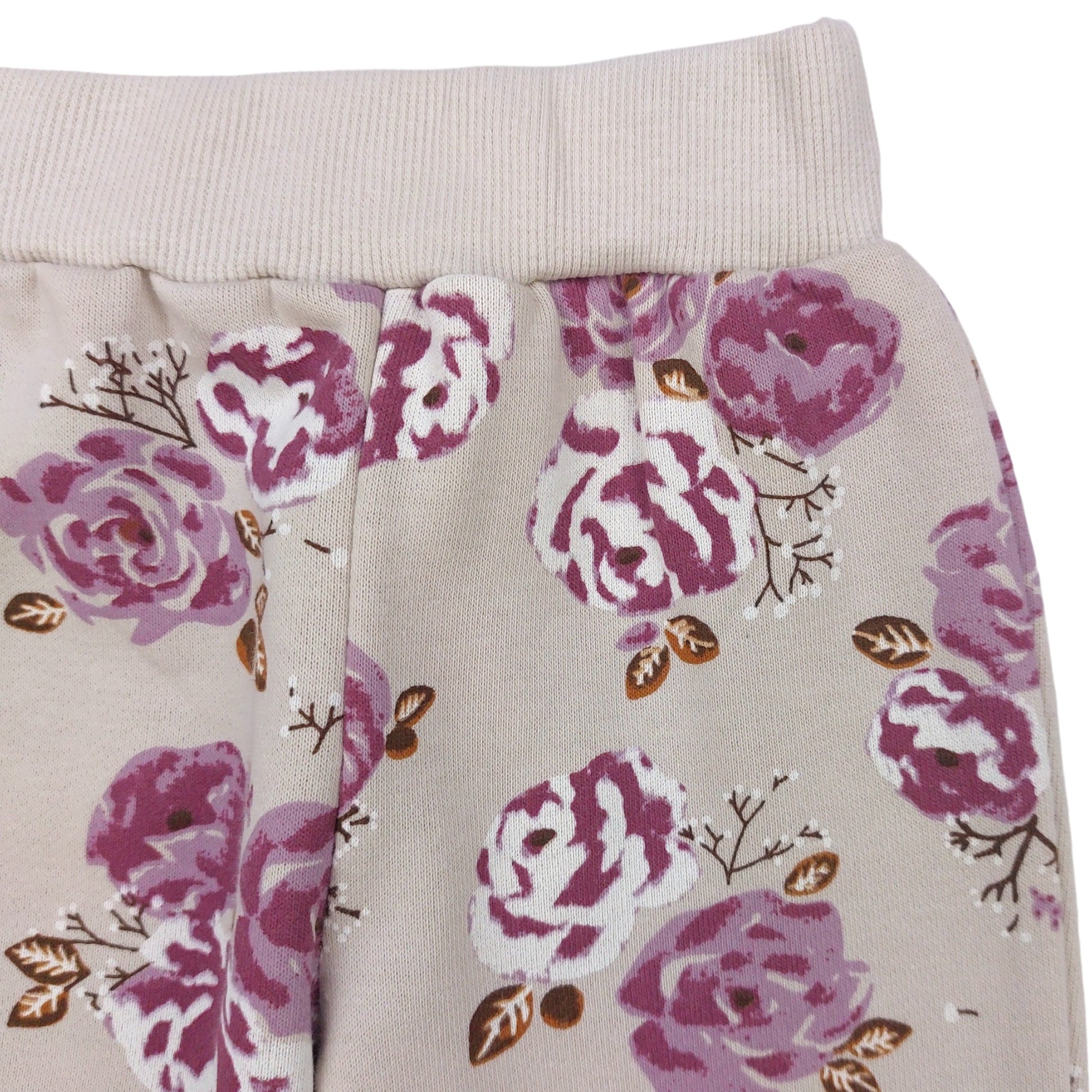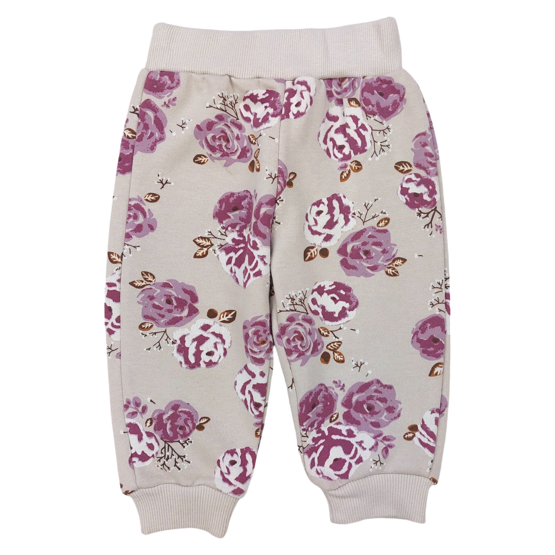 Spodnie doskonale uzupełniają dres, oferując delikatny kwiatowy wzór, który idealnie współgra z bluzą. Elastyczna talia oraz wykończenia w formie ściągaczy zapewniają perfekcyjne dopasowanie i komfort podczas każdej aktywności. Spodnie są przyjemne dla skóry dziecka, gwarantując wygodę przez cały dzień.