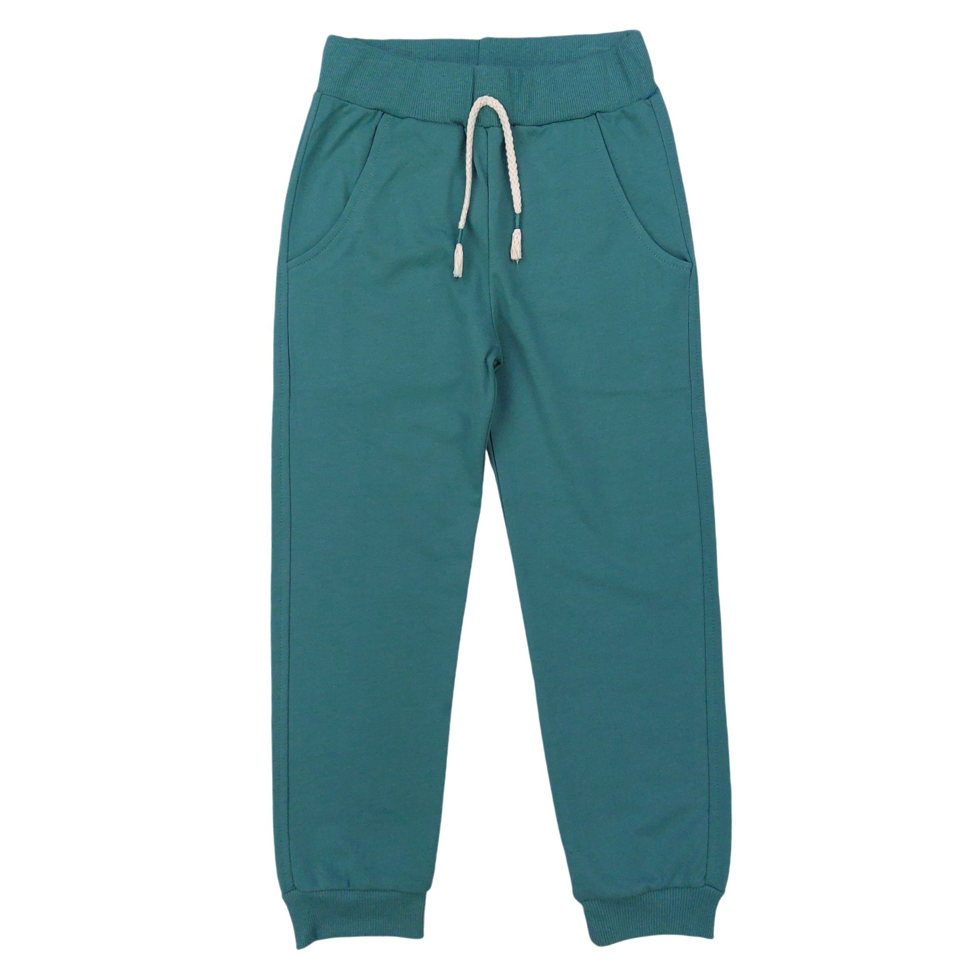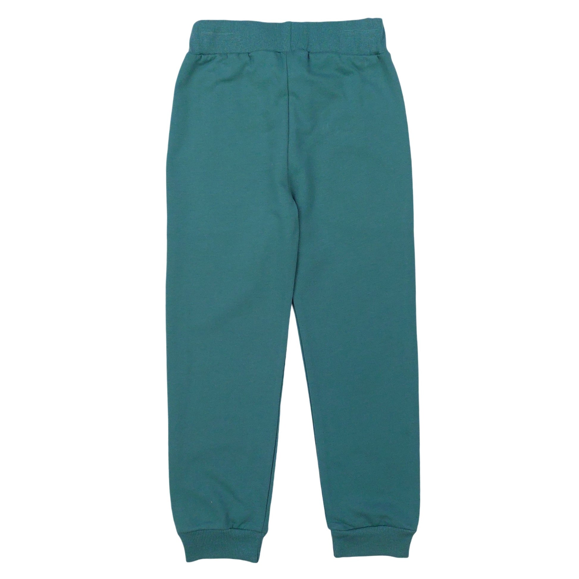 Spodnie: Dresowe spodnie w odcieniu zielonym to kwintesencja wygody. Wyposażono je w praktyczne kieszenie, które pomieszczą drobne skarby, oraz elastyczny pas z regulowanym sznurkiem, co umożliwia idealne dopasowanie do sylwetki dziecka. Nogawki zakończono ściągaczami, dzięki czemu spodnie świetnie trzymają się na miejscu podczas zabawy czy biegania.
