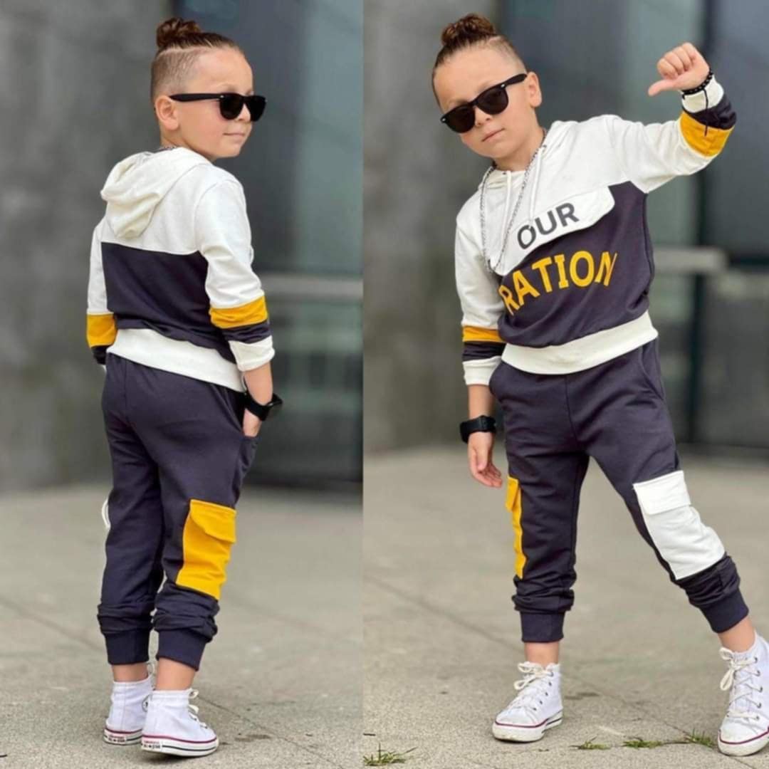 Poznaj modny i funkcjonalny dres chłopięcy Ration, który spełni oczekiwania każdego młodego trendsettera. Ten dwuczęściowy komplet w kolorze grafitowym z detalami w bieli i musztardowym to doskonały wybór na co dzień, na wyjścia do szkoły czy spotkania z rówieśnikami.
