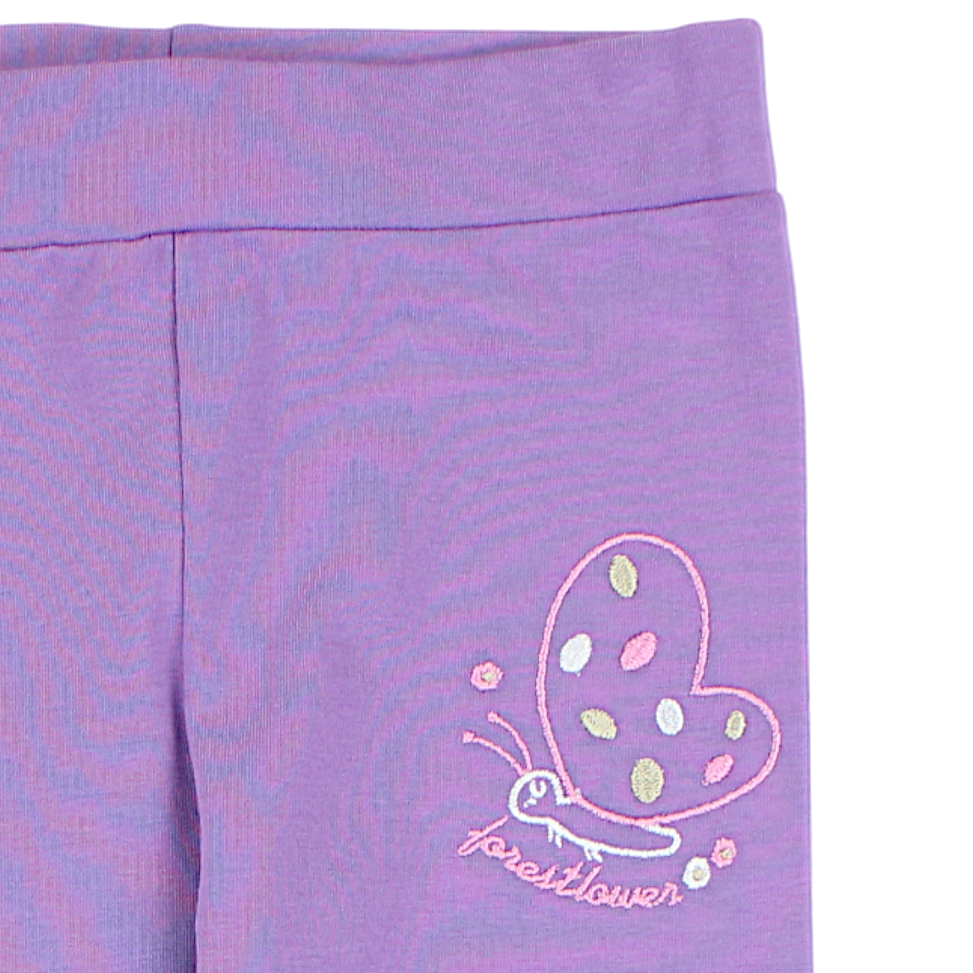 Te dziewczęce getry to idealny wybór na wiosenne i letnie dni. Wykonane z miękkiej i elastycznej bawełny, zapewniają wysoki komfort noszenia oraz swobodę ruchów. Fioletowy kolor w połączeniu z uroczym haftem motylka na nogawce sprawia, że spodobają się każdej małej miłośniczce modnych stylizacji. Szeroki, elastyczny pas gwarantuje wygodne dopasowanie, a dopasowany krój podkreśla dziewczęcy charakter.