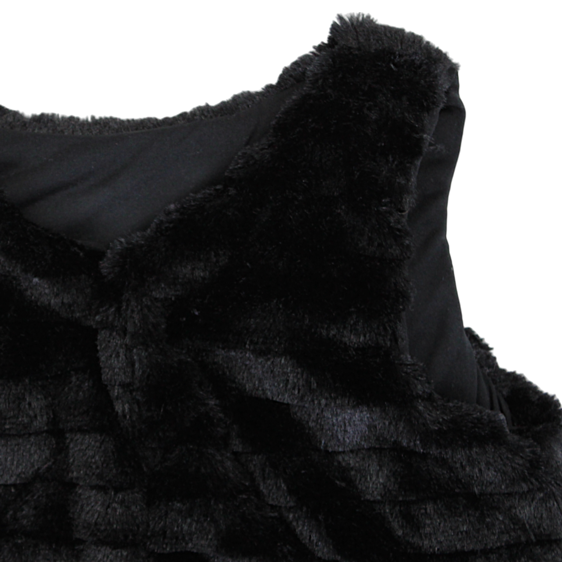 Stylowa czarna kamizelka dla dziewczynki, idealna na sezon wiosna-lato. Wykonana z miękkiego, futerkowego materiału, z podszewką, która zapewnia wygodę noszenia. Prosty krój i elegancki design czynią ją doskonałym wyborem zarówno na co dzień, jak i na specjalne okazje.