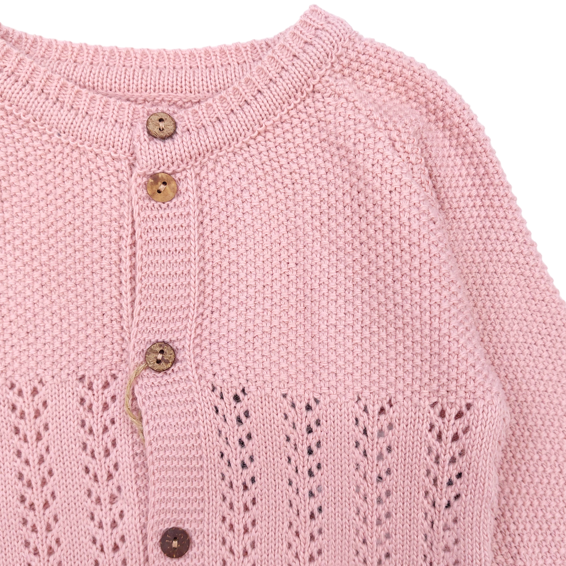 Komplet sweterek ażur dziewczęcy pudrowy róż Becol 7042-151124-39