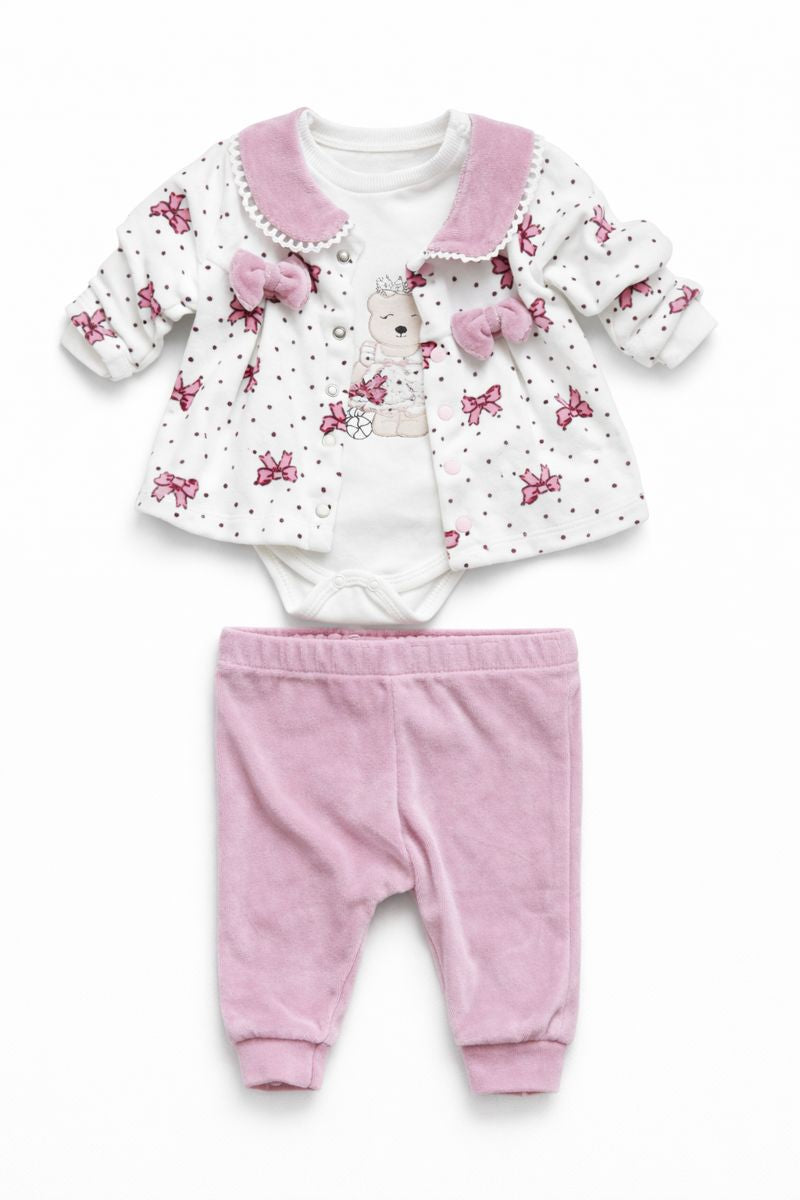Komplet 3 części z body dziewczęcy ciemny róż Pacel 1423-121225