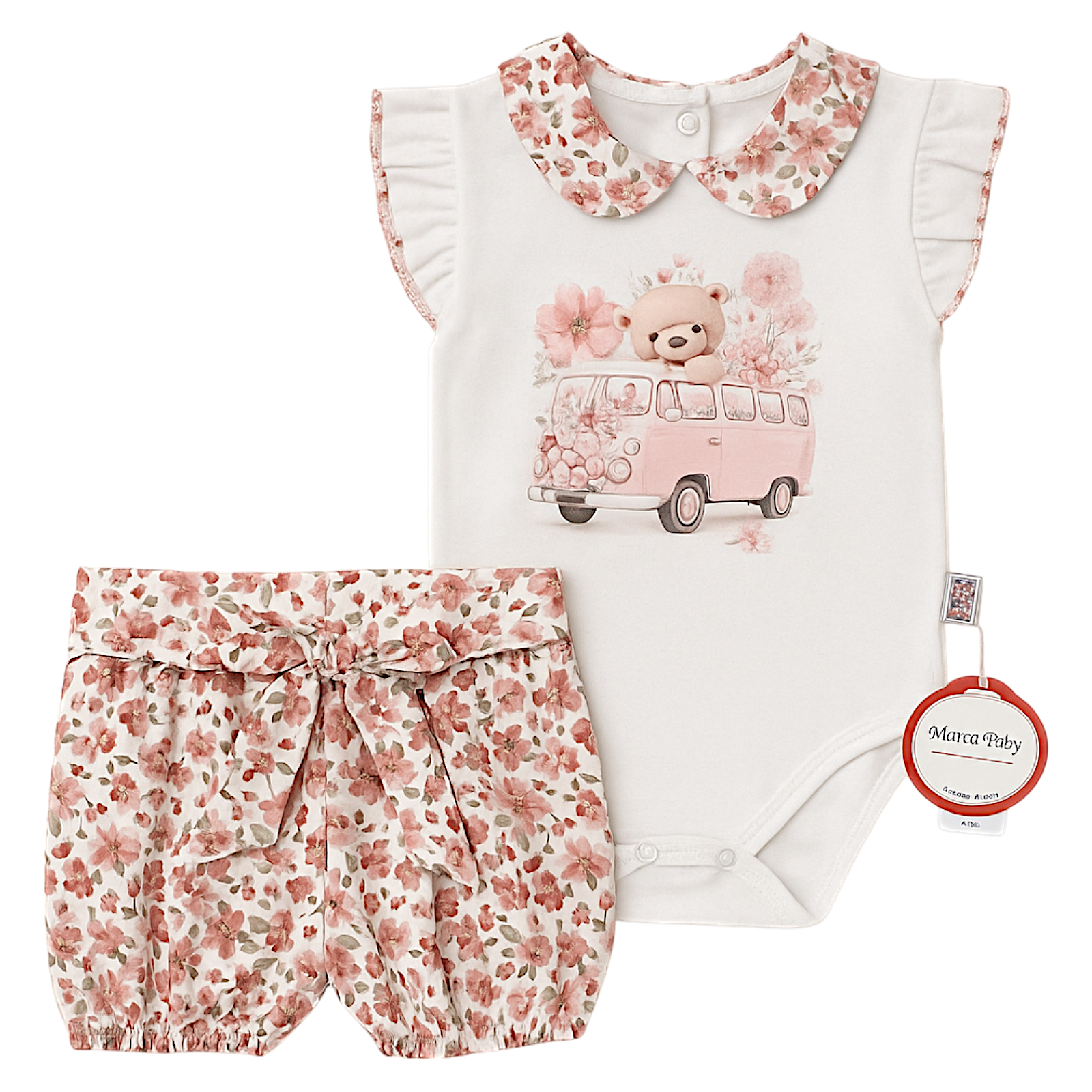 Komplet body i szorty dziewczęcy różowy Murat Baby 9607-30525-40