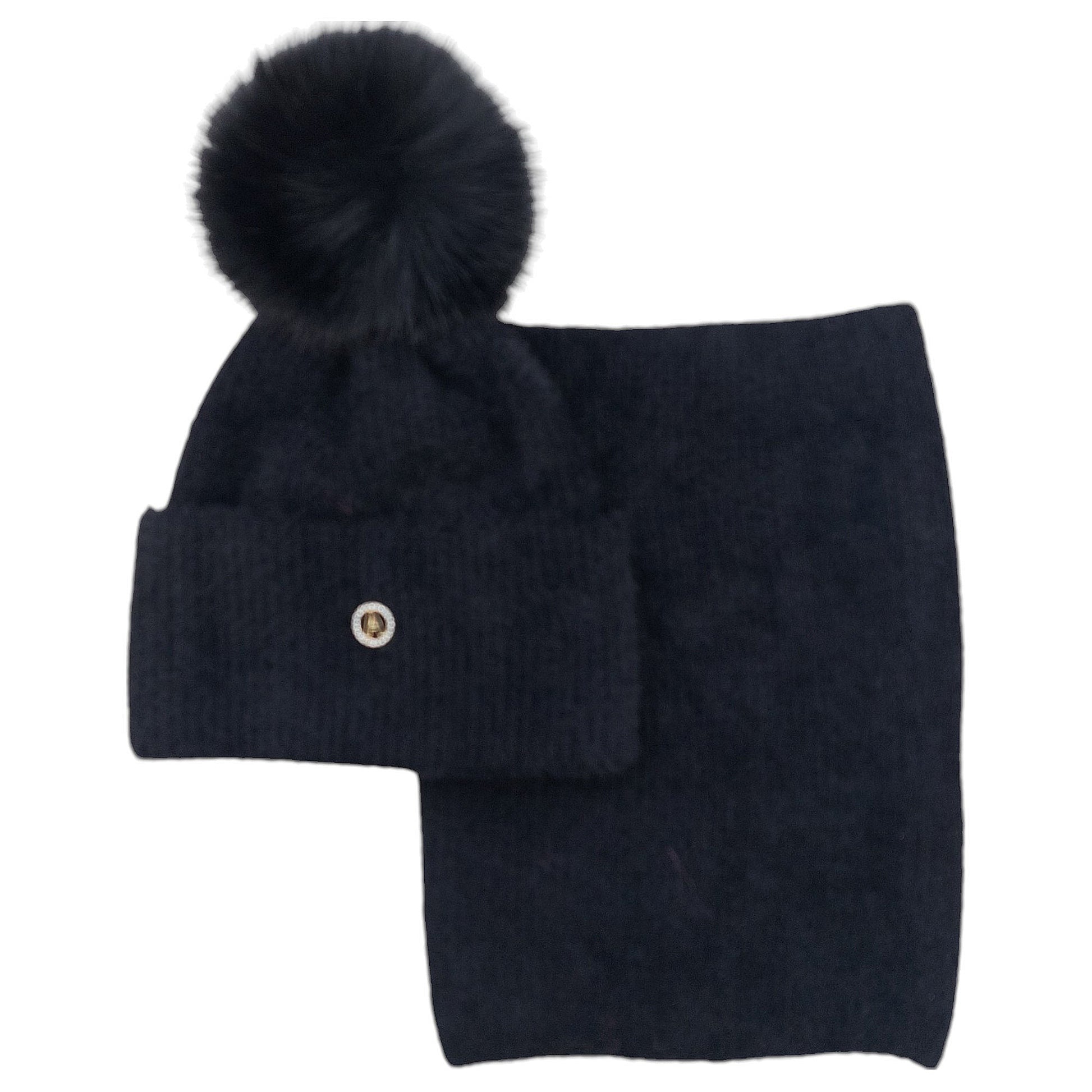 Komplet czapka z kominem alpaka dziewczęcy Ambra N-27-241024 z sezonu jesień-zima kolor czarny