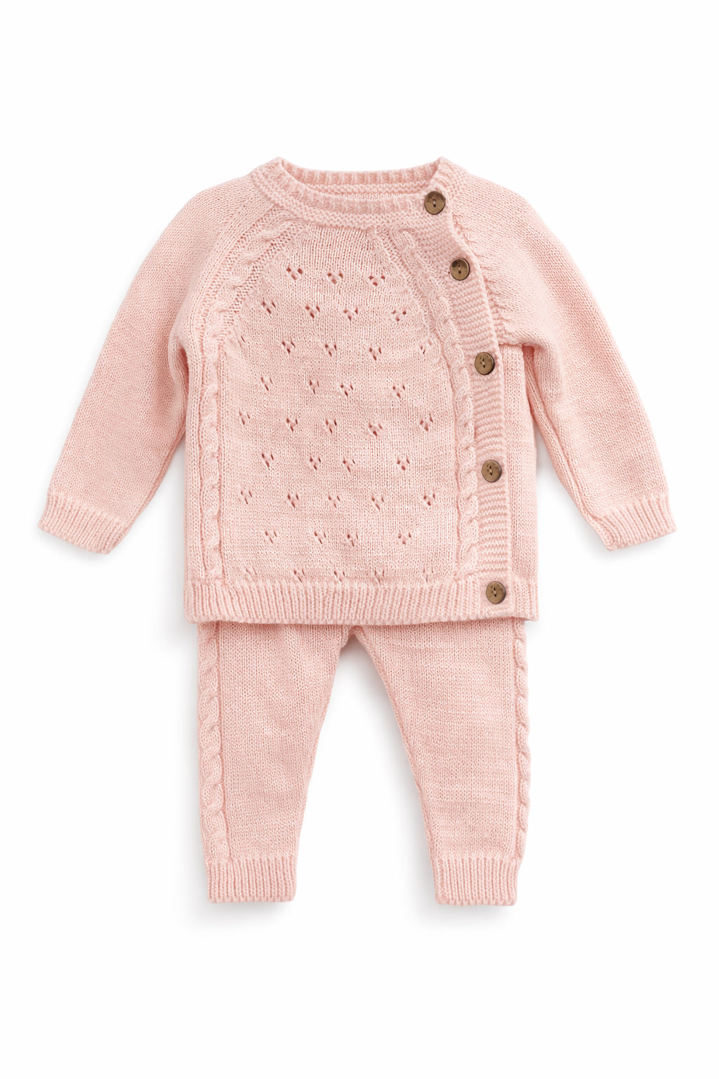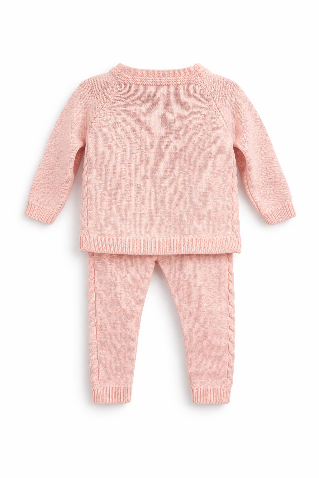 Uroczy komplet sweterkowy dla dziewczynki w kolorze różowym od marki Becol. Zestaw składa się z dwóch części: sweterka i spodni. Sweterek ma długie rękawy i delikatny wzór, który dodaje mu elegancji. Spodnie są wygodne, z elastycznym pasem, co zapewnia komfort noszenia. Idealny na sezon wiosna-lato, wykonany z miękkiego materiału, który jest przyjazny dla skóry dziecka. Doskonały wybór na codzienne wyjścia i specjalne okazje.