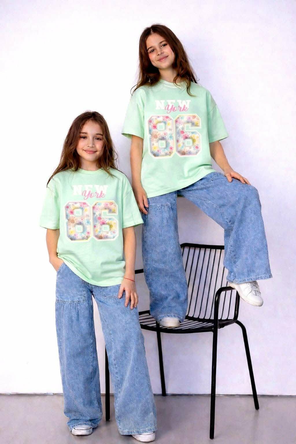 Dziewczęca koszulka oversize New York w kolorze mięty