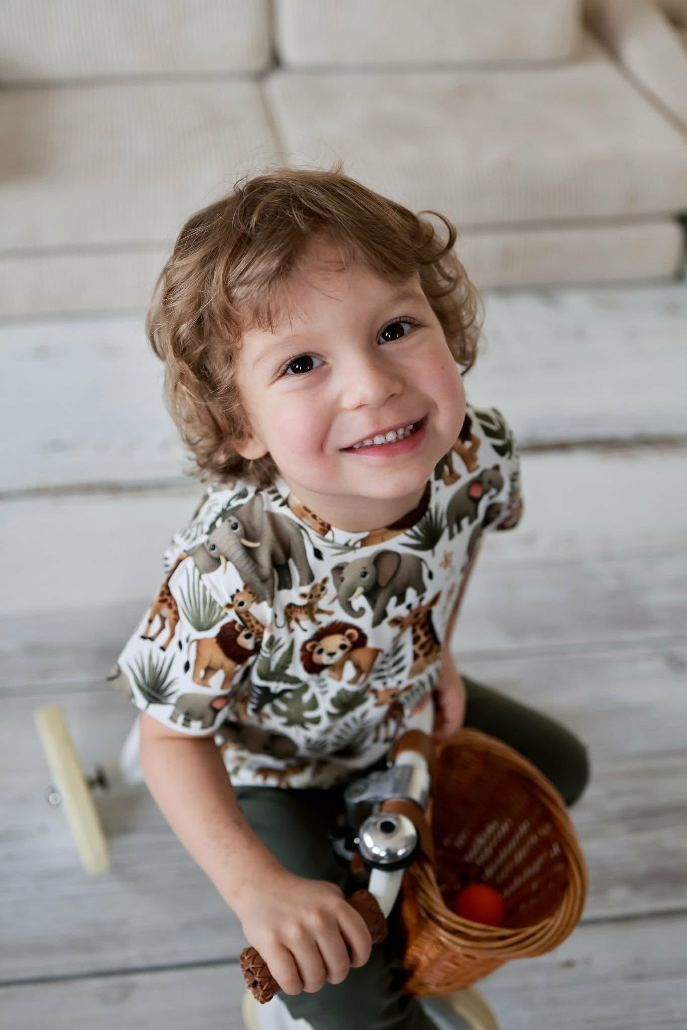 Chłopięca koszulka z motywem zwierzątek w kolorze oliwkowym