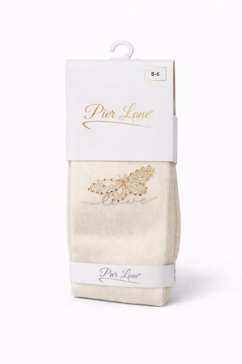 Dziewczęce kremowe rajstopy z motywem motyla od Pier Lone