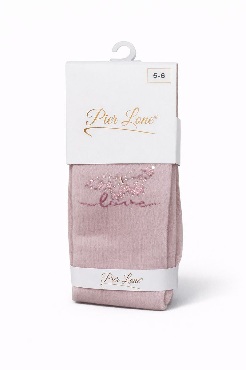 Pachnące rajstopy dziewczęce z motylkiem w pudrowym różu Pier Lone