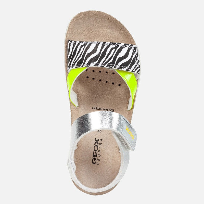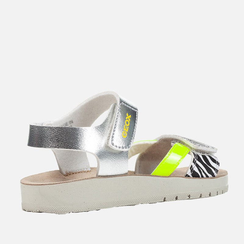 Buty dla dzieci sandałki dla dziewczynek Geox z kolekcji wiosna lato kod produktu J15EAC-004BN-C0598 kolor srebrny/żółty fluo