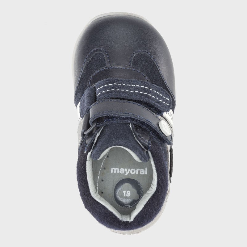 Buty sneakersy dla dzieci skórzane zapinane na rzep dla chłopców Mayoral z kolekcji baby boy z sezonu jesień-zima kod produktu 42156 kolor 10 granat. Buciki dziecięce.