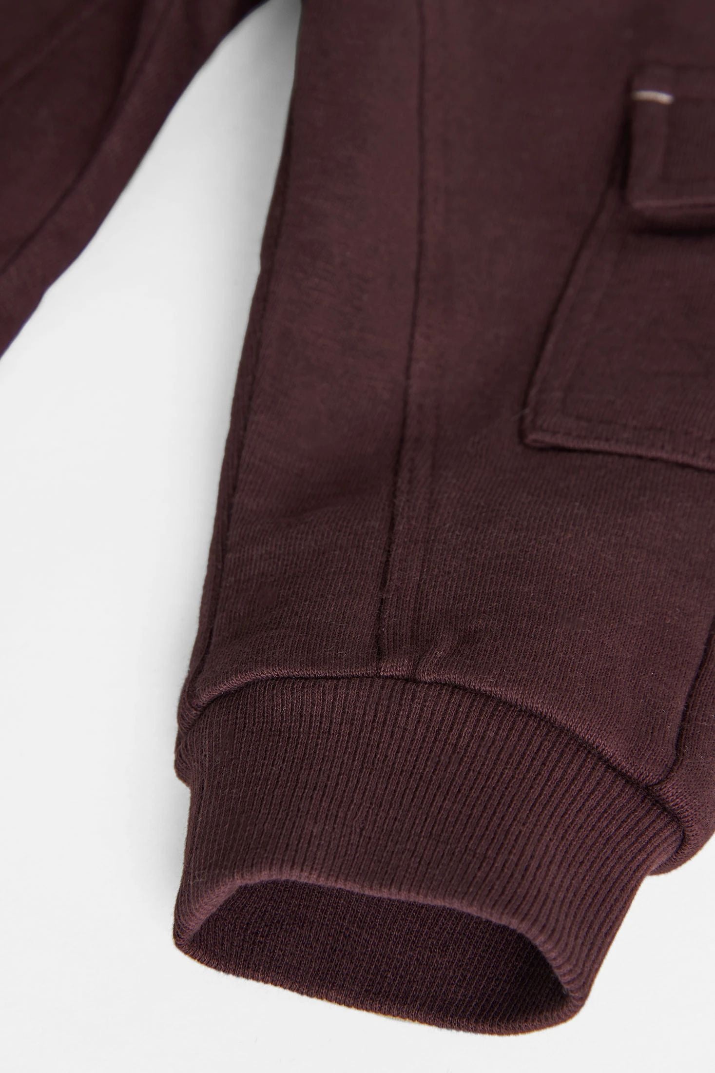 Wyróżniająca się ciepłym, brązowym kolorem tkanina doskonale wpisuje się w aktualne trendy modowe, nadając stylizacji ponadczasowego charakteru. Spodnie zostały zaprojektowane z myślą o maksymalnym komforcie – szeroki pas z regulowanym sznurkiem umożliwia idealne dopasowanie, co sprawia, że spodnie będą doskonałe zarówno na co dzień, jak i podczas bardziej aktywnych zabaw. Dodatkowo elastyczne mankiety przy nogawkach gwarantują wygodę i zapobiegają przesuwaniu się materiału podczas ruchu.