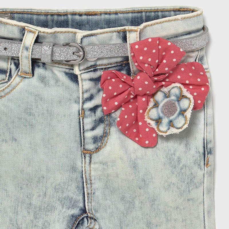 Spodnie długie jeansy dla dzieci z paskiem i ozdobną aplikacją dziewczynka Mayoral z kolekcji baby girl z sezonu wiosna-lato kod produktu 1577 kolor 51 Błękitny. Odzież dla dzieci.