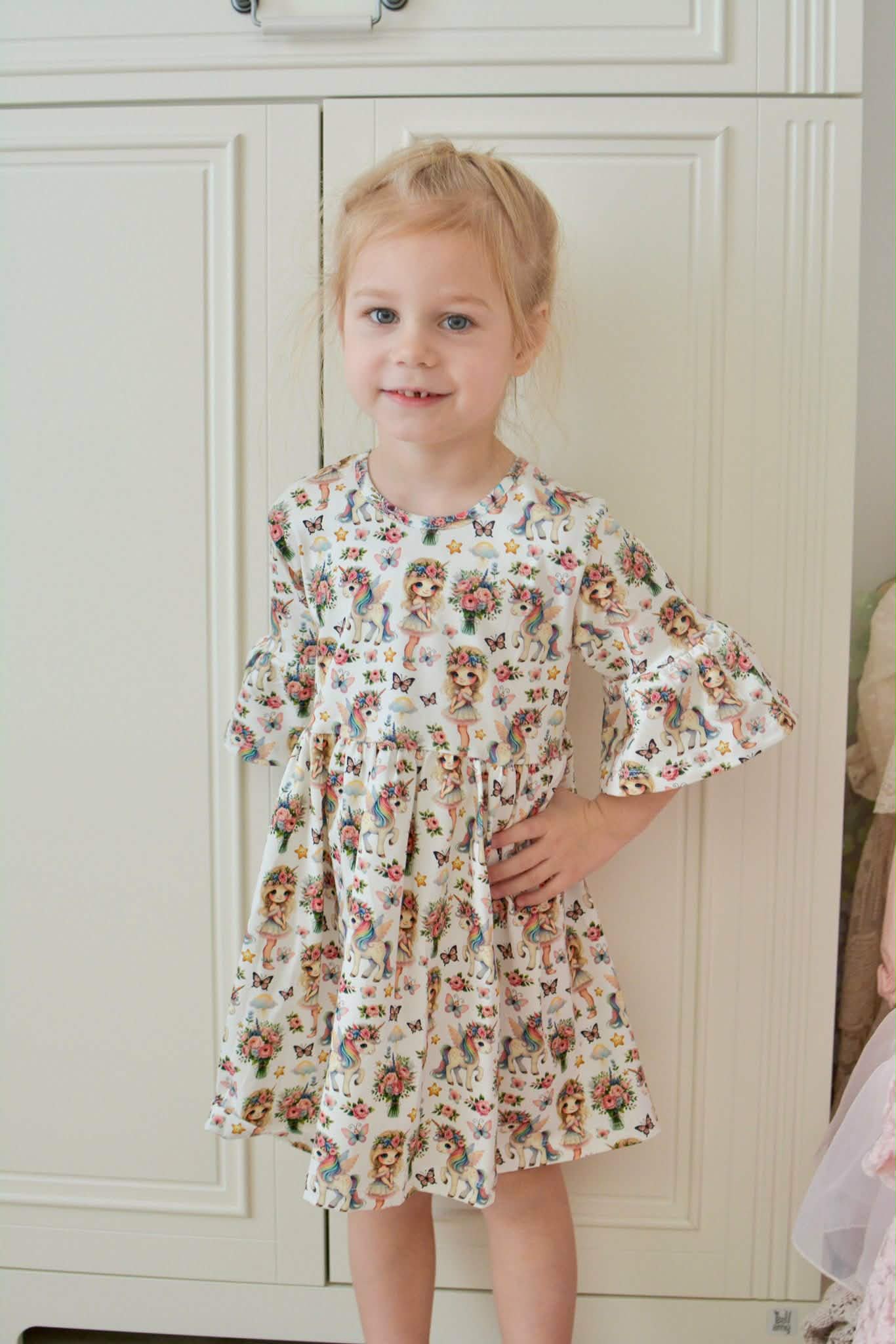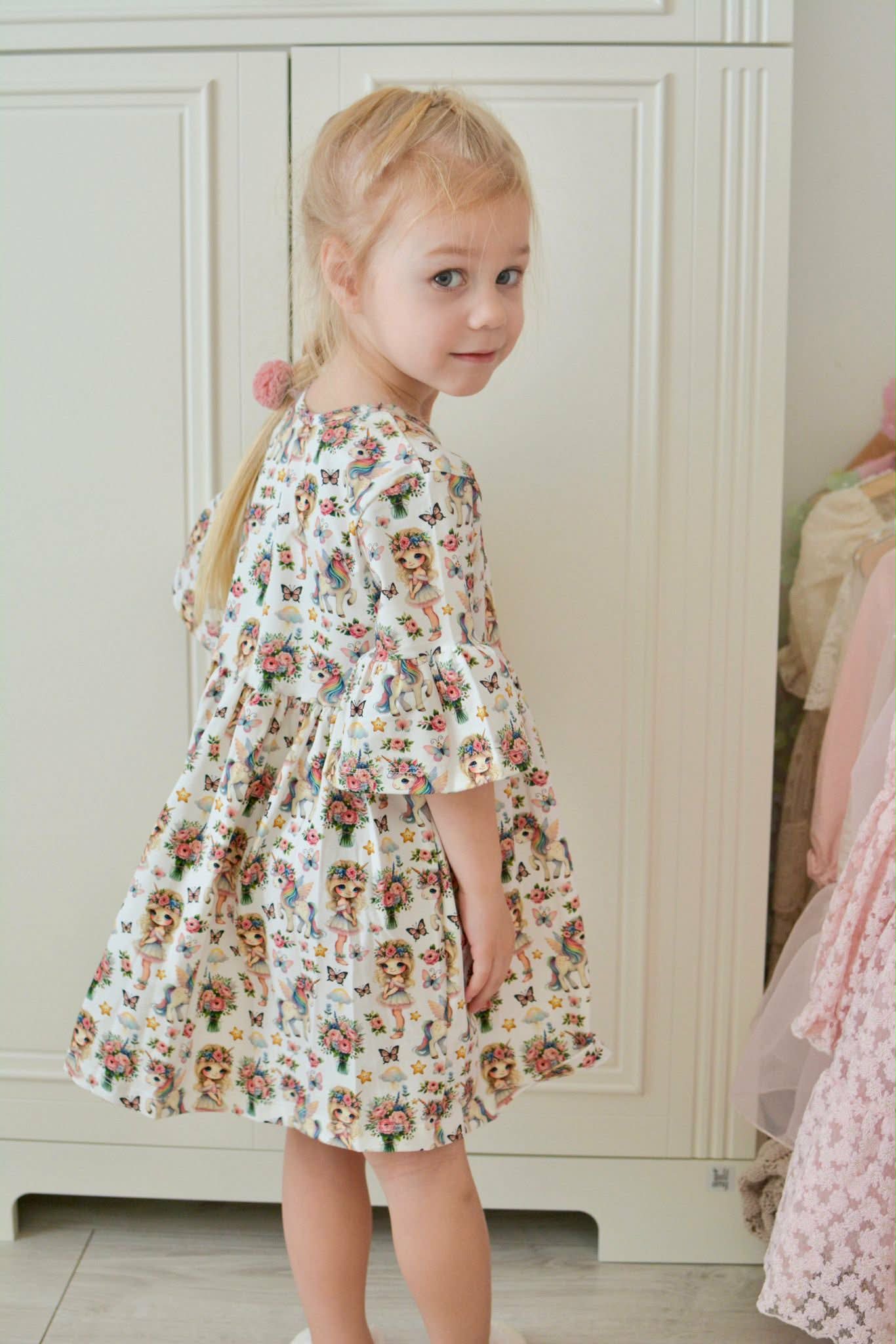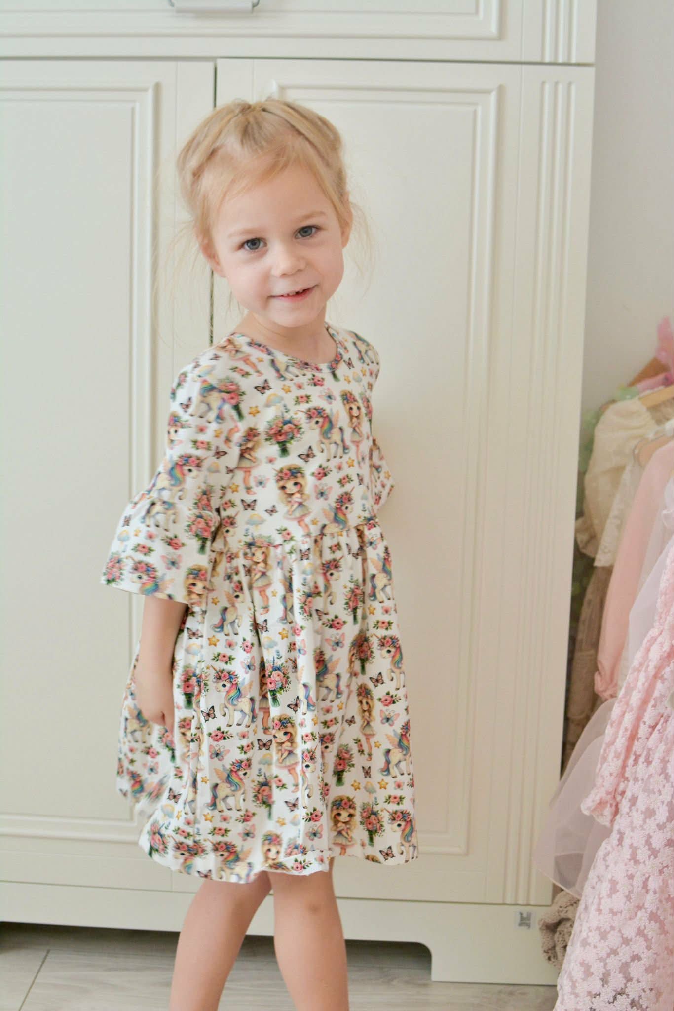 Dziewczęca sukienka z motywem jednorożca w kolorze brudnego różu