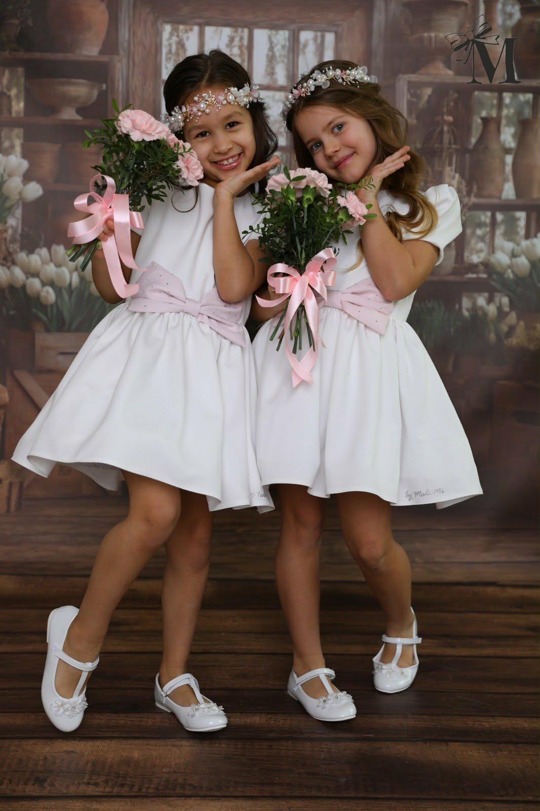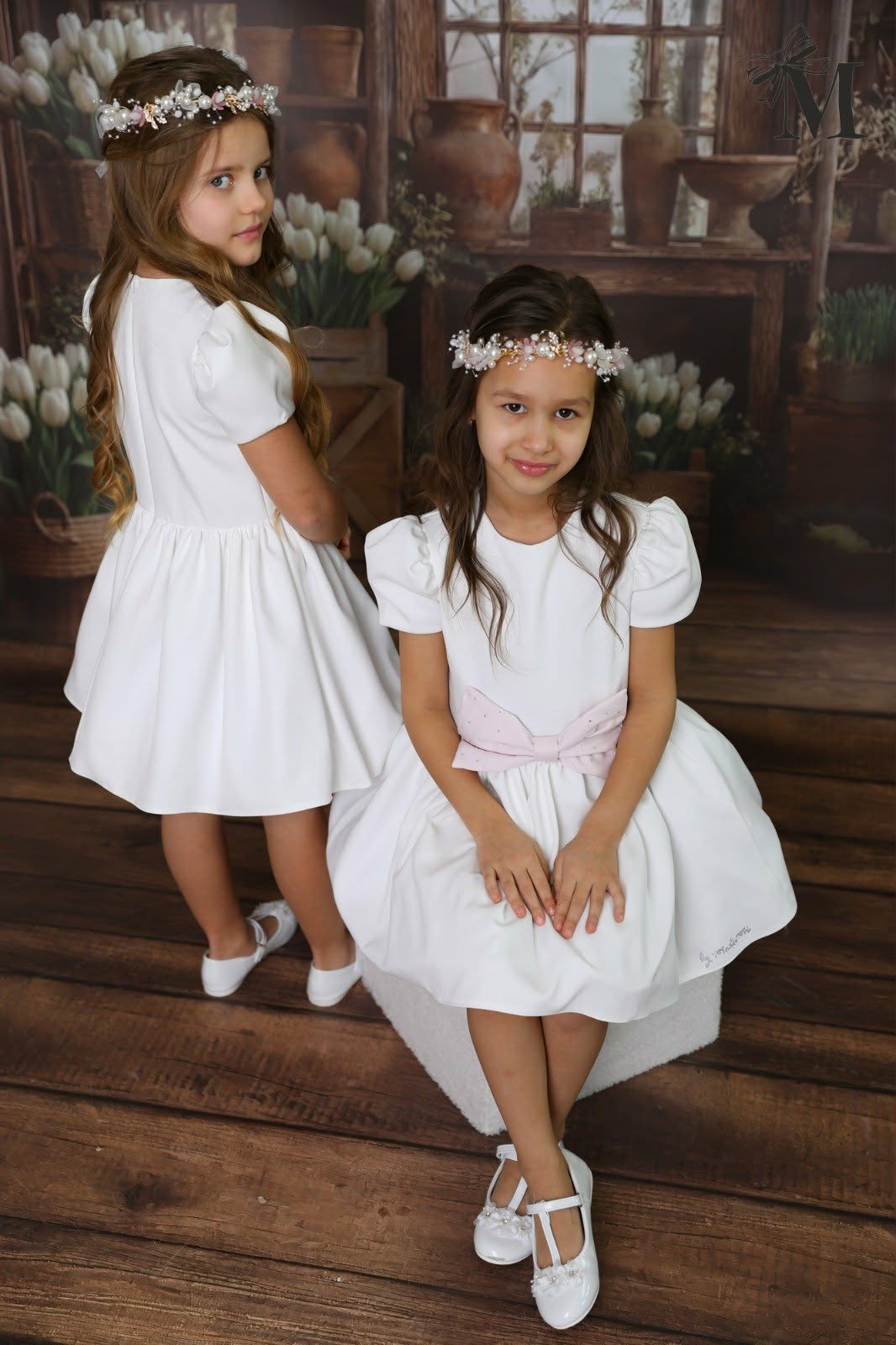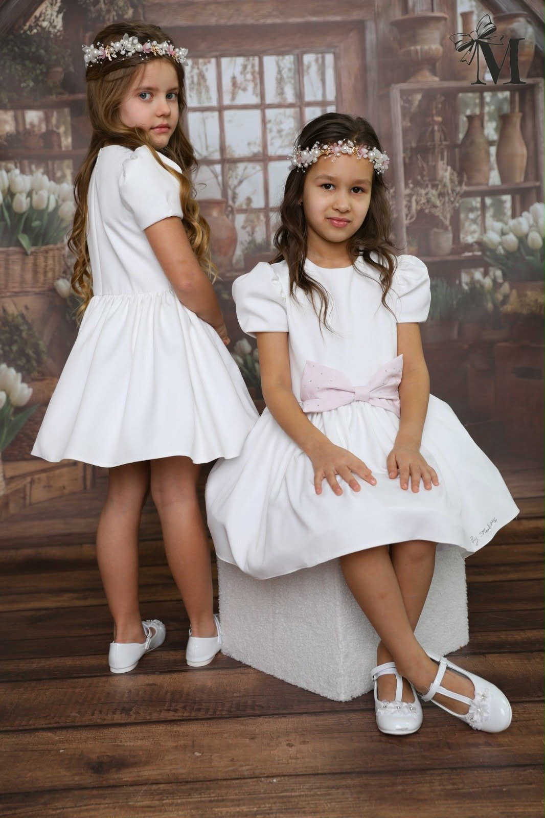 Elegancka sukienka dziewczęca z kokardą w kolorze białym od MałaMi