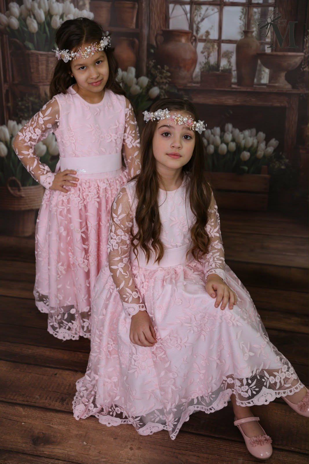 Sukienka koronkowa z kokardą dziewczęca różowa MałaMi 1877-5326-40