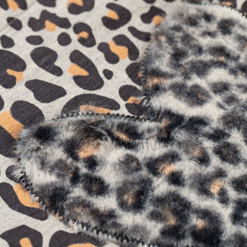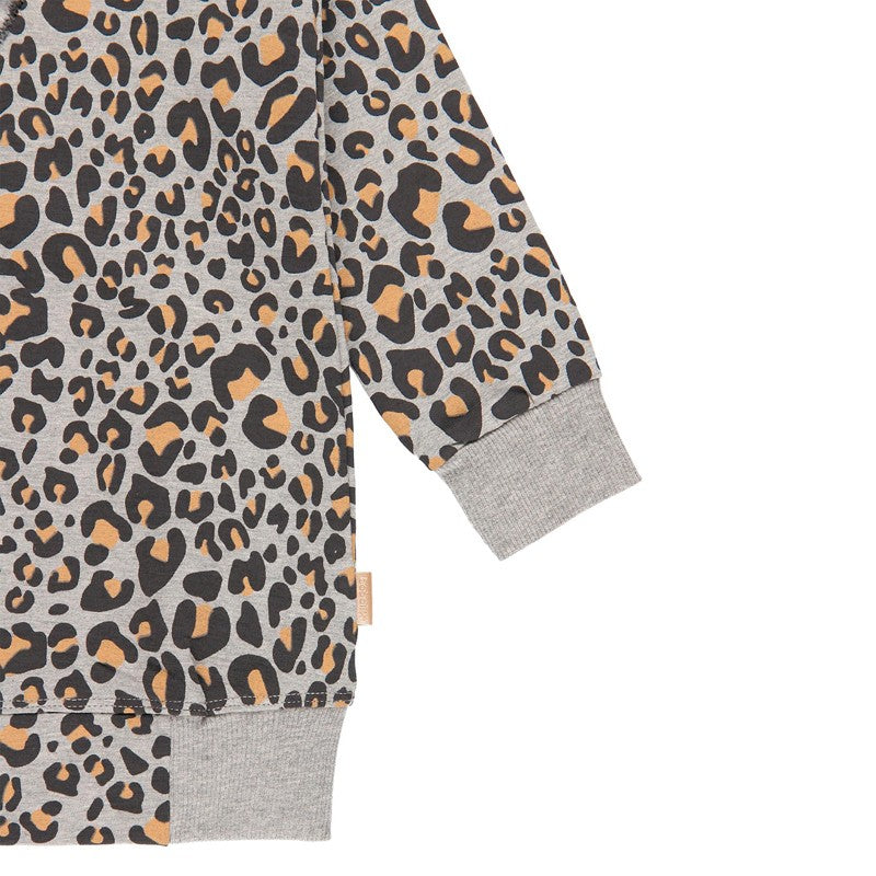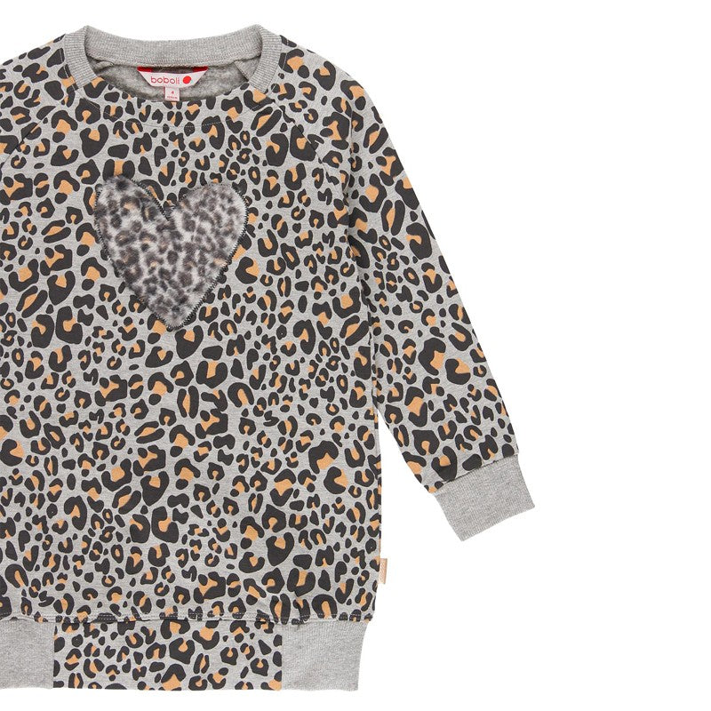 Sukienka bawełniana dla dziewczynki dla dzieci z długim rękawem,futerkiem i nadrukiem w panterkę dziewczynka Boboli z kolekcji jesień zima kod produktu 441087 kolor szary. Odzież dziecięca.