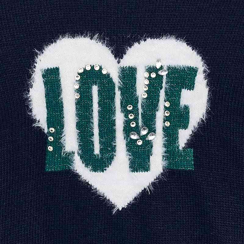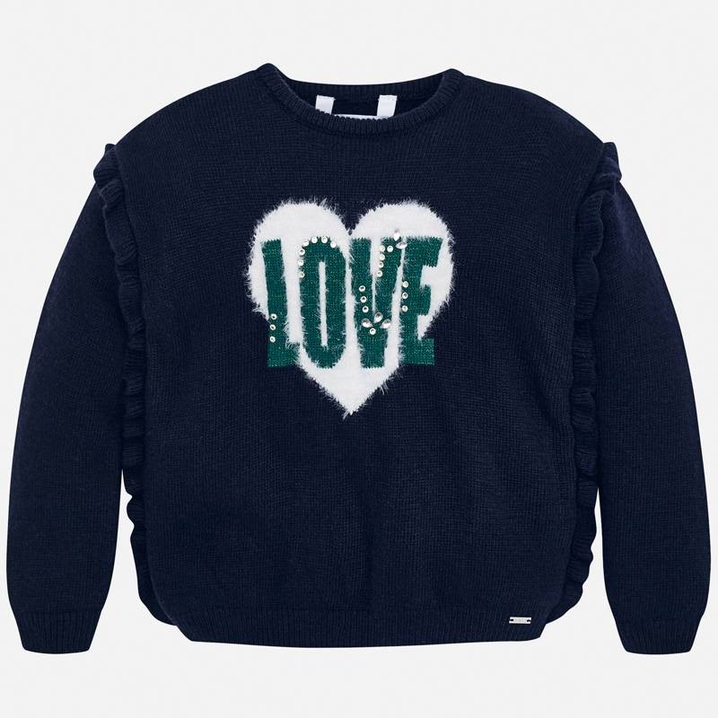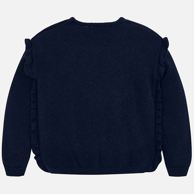 Ubrania dziecięce Mayoral. Sweter intarsja z falbanką z kolekcji Mini girl z sezonu jesień zima. Kod produktu producenta 4304 kolor 37 Granatowy.