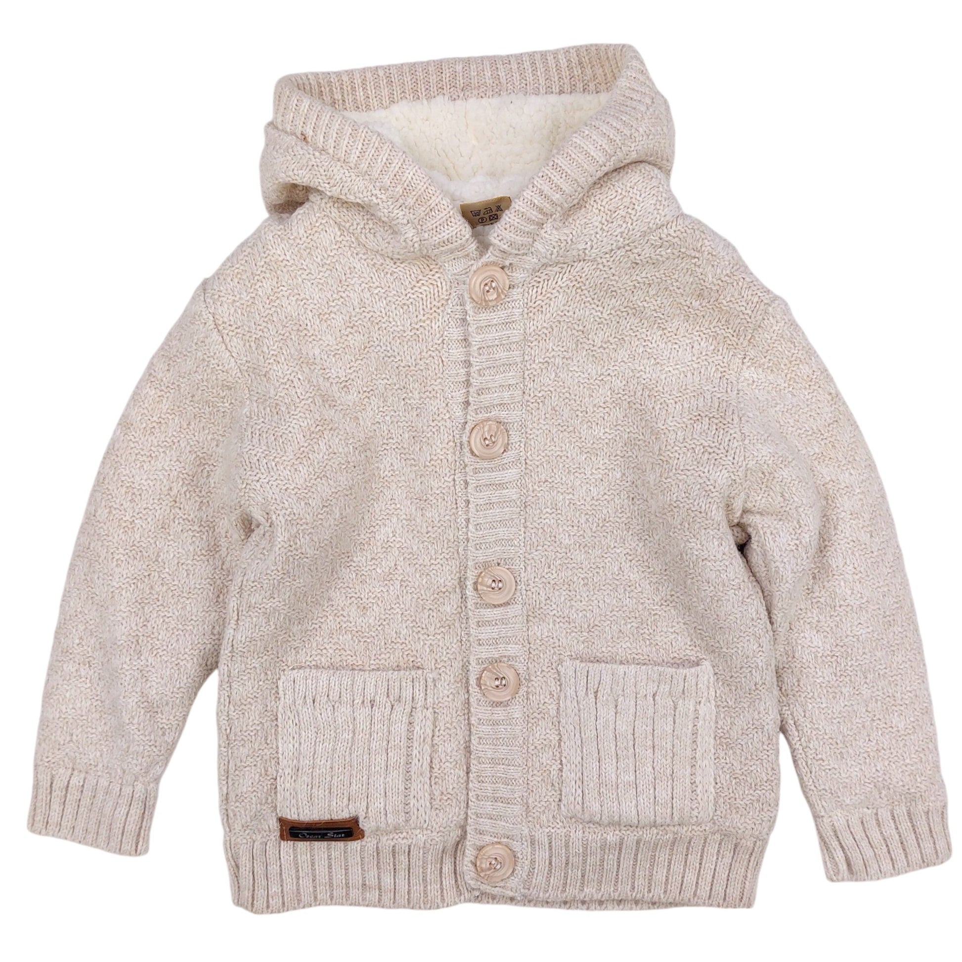 Sweter ocieplany na baranku z kapturem chłopięcy beż Oscar Star 8692458-13924 z sezonu jesień-zima kolor beż