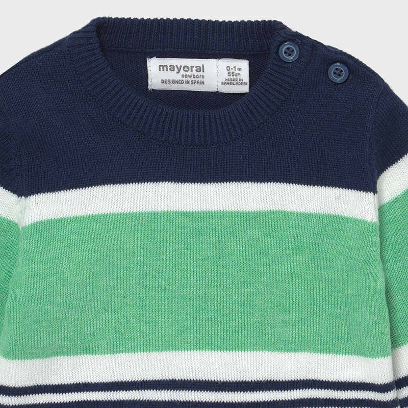 Sweterek dla dzieci w paski, wkładany przez głowę chłopiec Mayoral z kolekcji newborn boy z sezonu wiosna-lato kod produktu 1333 kolor 93 granat/Mięta. Ubranka dla noworodka.