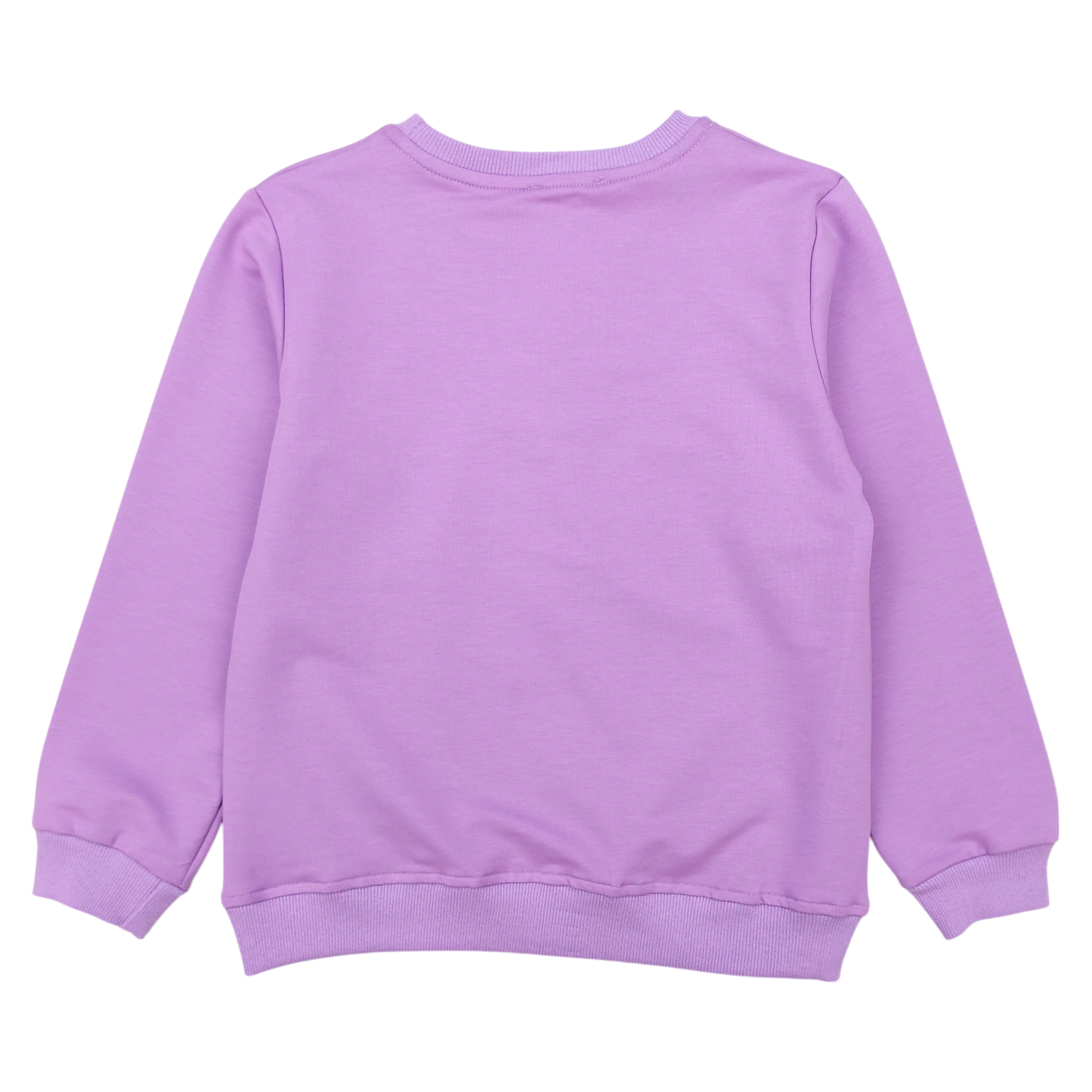 Dassi 's purple girl's blouse is a combination of comfort and joyful design. Made of soft cotton , it guarantees comfort when worn every day. The model has long sleeves and a round neckline , which ensures freedom of movement. The main advantage of the blouse is the charming print with colorful cats and delicate, geometric patterns, which add to its originality and girlish charm. Elastic cuffs on the sleeves and bottom of the blouse guarantee a perfect fit.