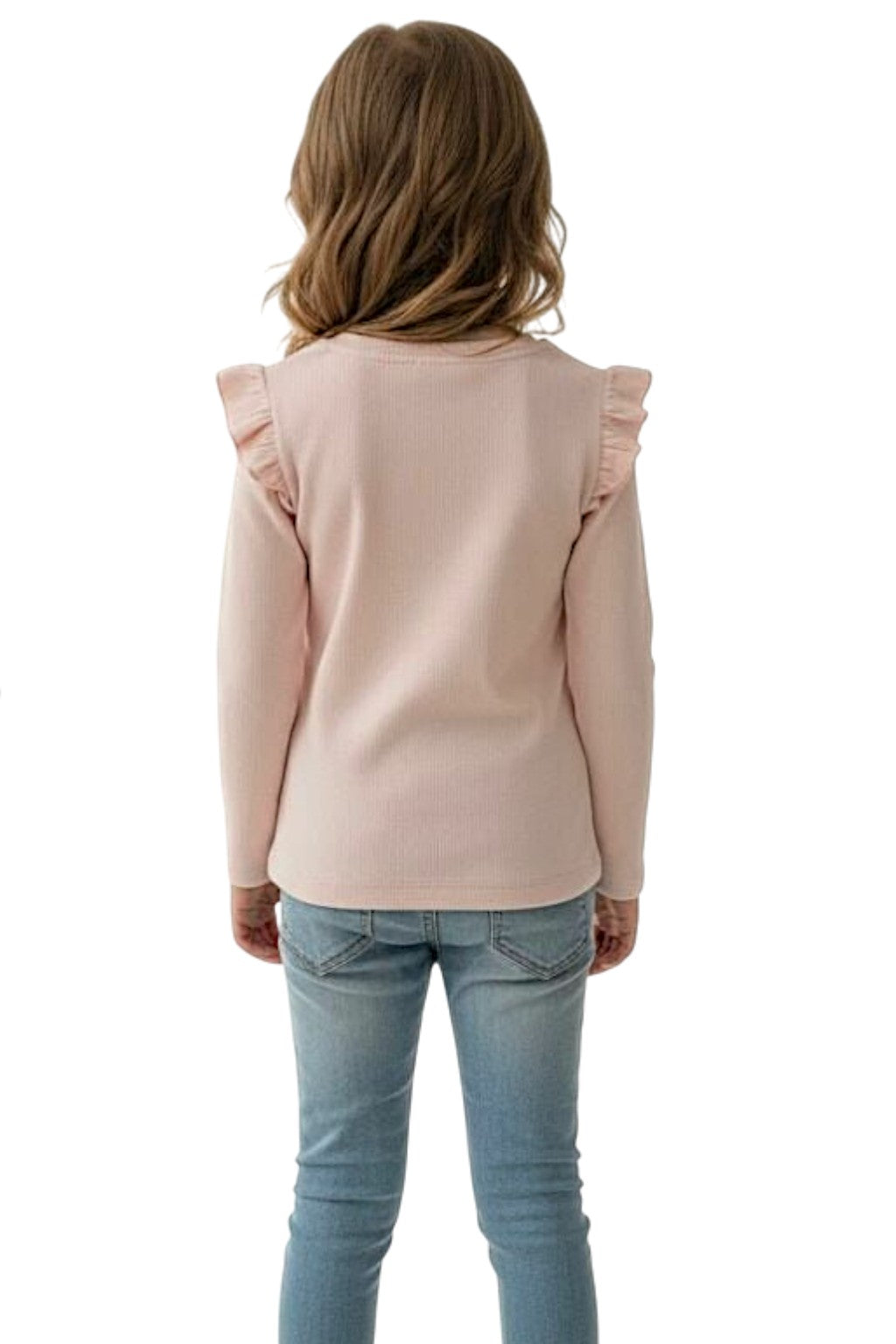 Dziewczęca bluzka prążkowana z motywem Myszki w pudrowym różu