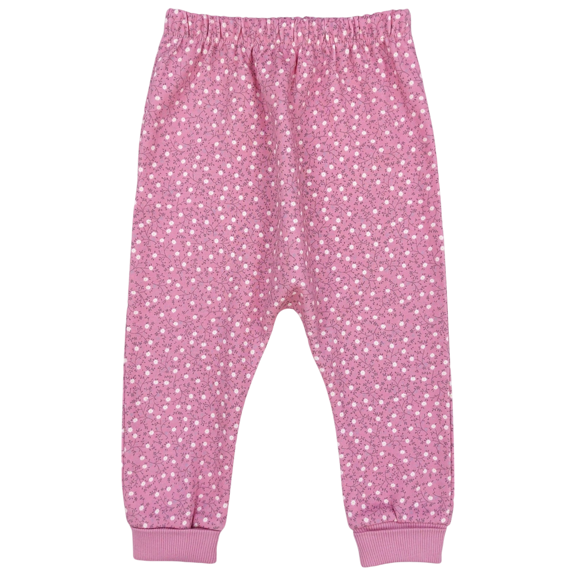 The trousers in this set also feature a floral motif, creating a harmonious and coherent set. Their loose cut and elastic waistband ensure freedom of movement during play, while also providing comfort throughout the day. Thanks to their careful workmanship, they are durable for everyday use, making them a practical choice for active children.