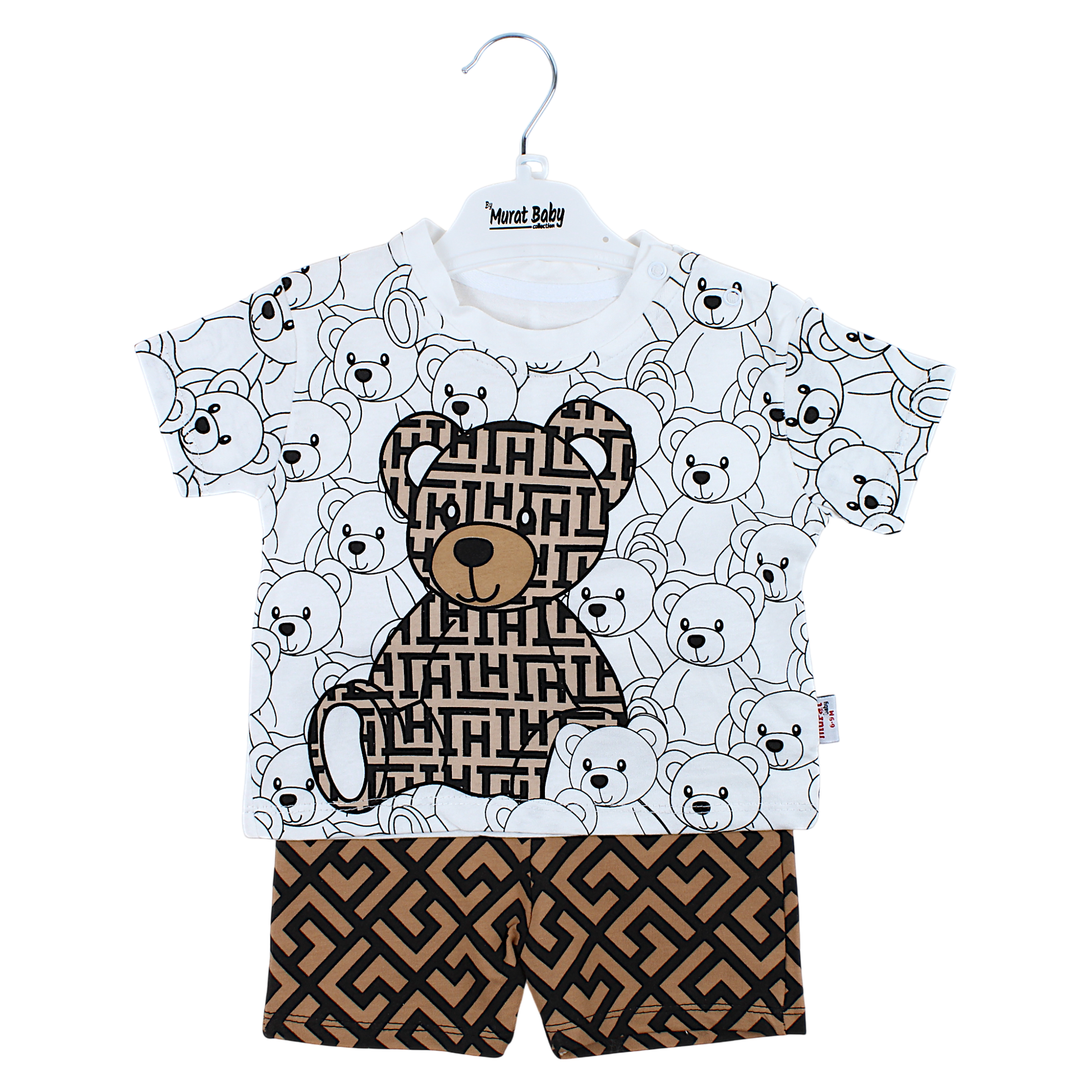 The presented Murat Baby boy set is the perfect solution for the upcoming spring-summer season . The whole is made in a delicate, beige color , which is an attractive basis for styling for boys . The top of the set is a T-shirt with short sleeves, on which there is a charming print of teddy bears . Such a motif wins the hearts of both children and parents. The shorts have comfortable elastic bands at the waist, which ensures fit and comfort of wearing. The materials used allow the skin to breathe, which is extremely important, especially on warmer days. The back of the set is uniform, without additional applications, which adds elegance and simplicity. The product is intended for preschool children , perfect both for everyday use and for special occasions.
