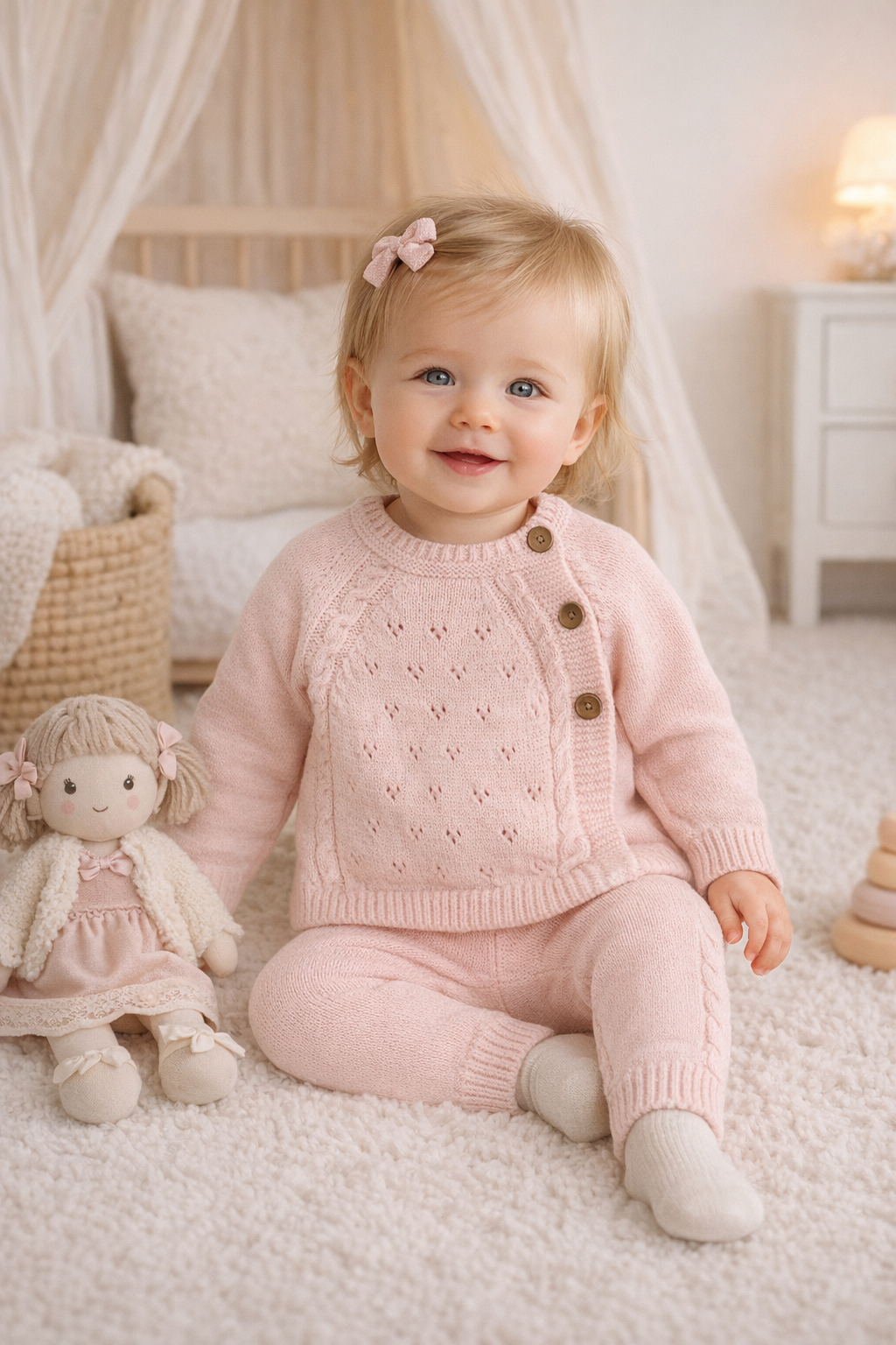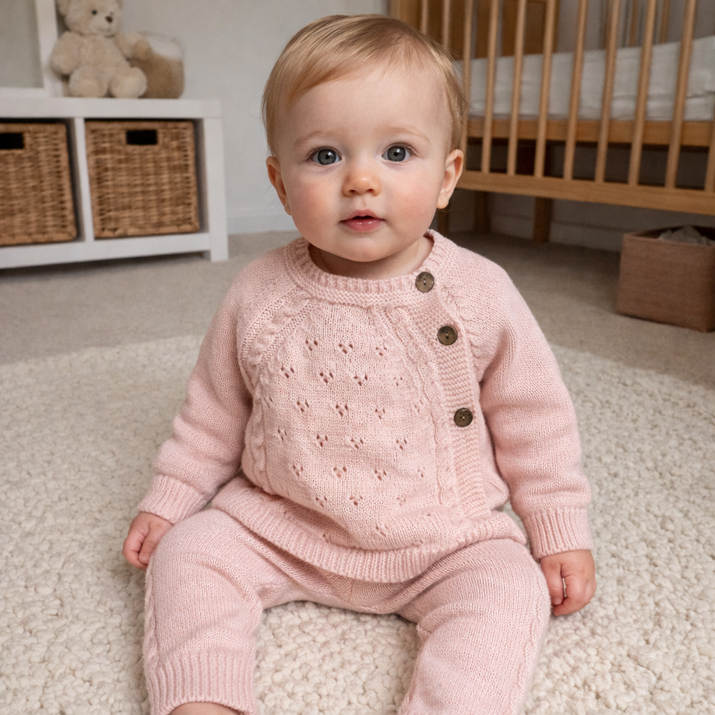 Różowy komplet sweterkowy dla dziewczynki Becol