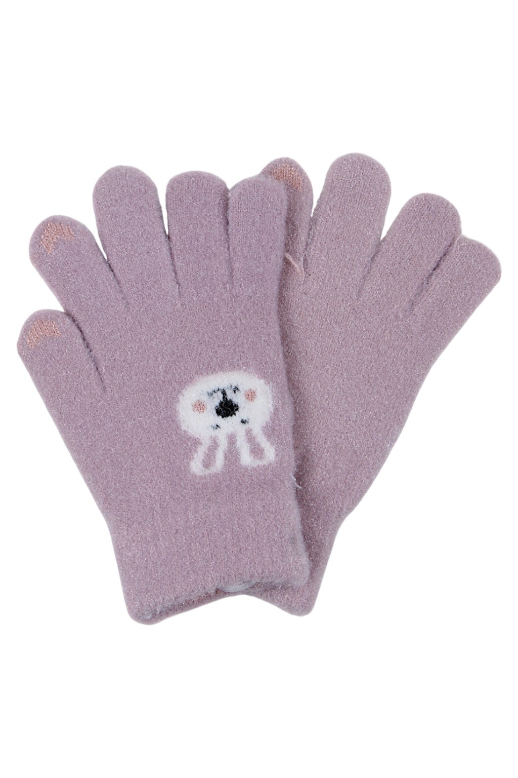 Dziewczęce rękawiczki z motywem królika w kolorze wrzosowym