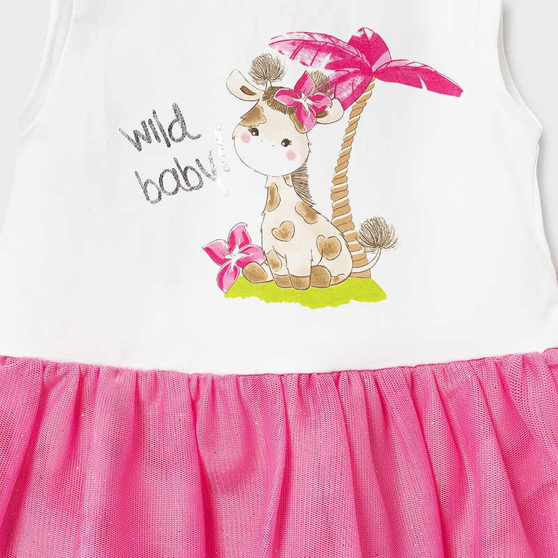 2-piece dress for children striped T-shirt with tie and strapless dress with print and tulle girl Mayoral from the baby girl collection from the spring-summer season product code 1976 color 60 Pink. Children's clothing.