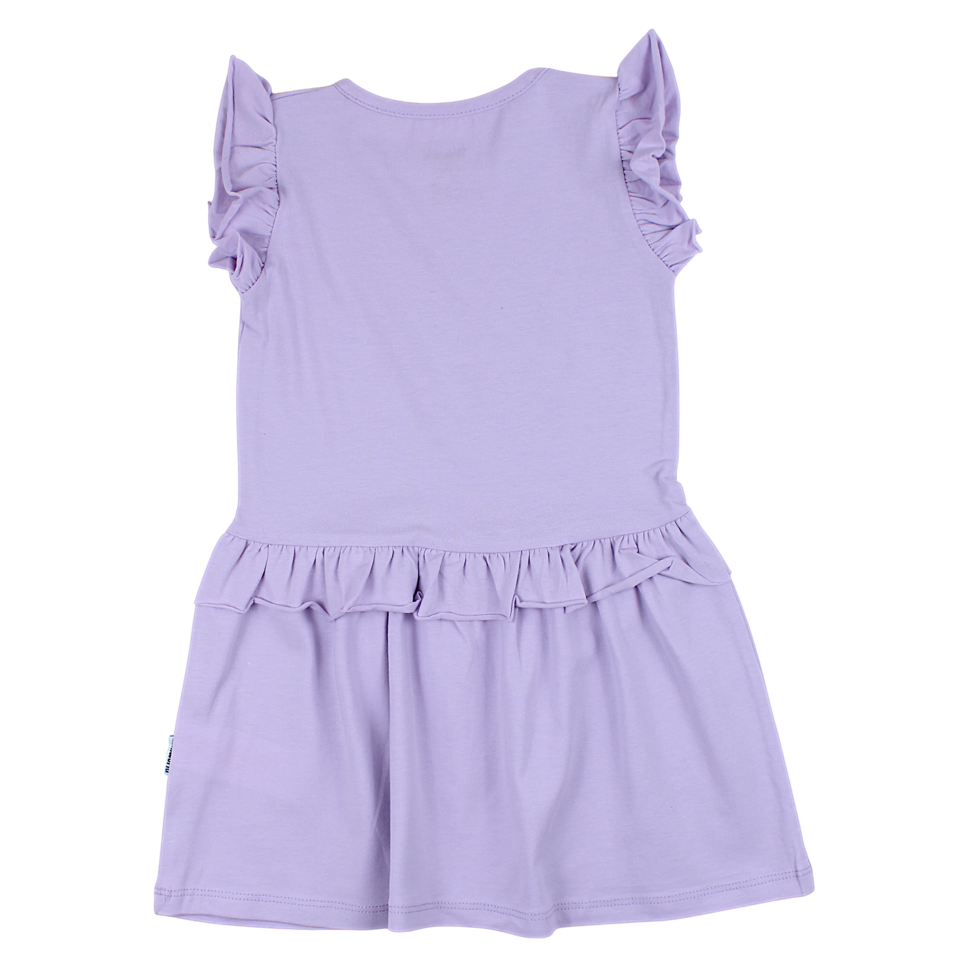 A beautiful purple dress for girls, adorned with delicate ruffles , perfect for the spring-summer season. Made of soft material, it guarantees comfort. The dress features short sleeves and a slightly flared hem, emphasizing a girly style. The lack of pockets and fastenings ensures a clean, elegant look.
